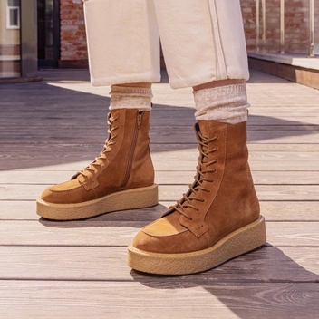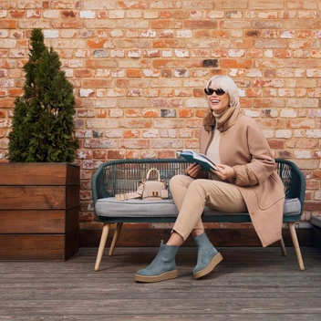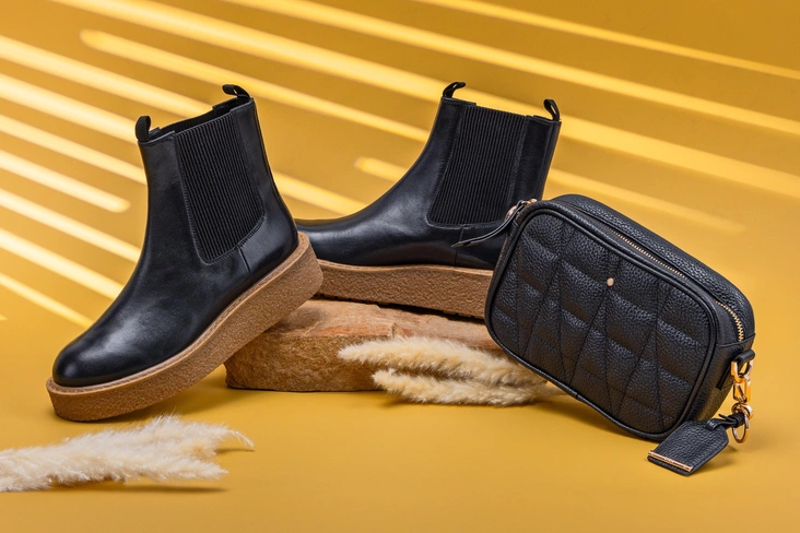 Акцент в коллекции сделали на армейские ботинки, замшевые пенни-лоферы, челси и эффектные казаки в лучших традициях бохо-шика. Особое внимание уделено палитре, составленной из актуальных коньячных оттенков, классического черного и его сочетания с бежевой «манкой», а также ментолового — одного из самых модных цветов года по версии экспертов Pantone.