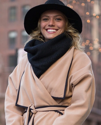 Шарф-хомут сдал свои позиции еще в середине 2010-х, однако среди россиянок он продолжает пользоваться спросом, ведь аксессуар отлично согревает в морозы. Какой бы комфортной и удобной эта модель ни была, с модой она уже не имеет ничего общего. Ей на смену пришел актуальный объемный шарф крупной вязки, который и выглядит стильно, и от ветра защищает. К тому же, модницам он нравится больше: снуд мы надеваем через голову, задевая прическу и макияж, а длинный шарф достаточно перекинуть через плечо.