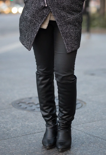 Одни считают их самым вульгарным элементом гардероба, другие же наотрез отказываются их снимать. Но мы знаем точно — россиянки никак не могут расстаться с кожаными леггинсами, а зря. Сочетание кожи и облегающей фактуры совсем не подчеркивают вашу фигуру, а лишь ее полнит, поэтому такая модель давно попала в список антитрендов. Оставьте лосины для занятий спортом или домашней одежды, а в город выходите в черных джинсах-скинни, которые смотрятся элегантно и стильно.