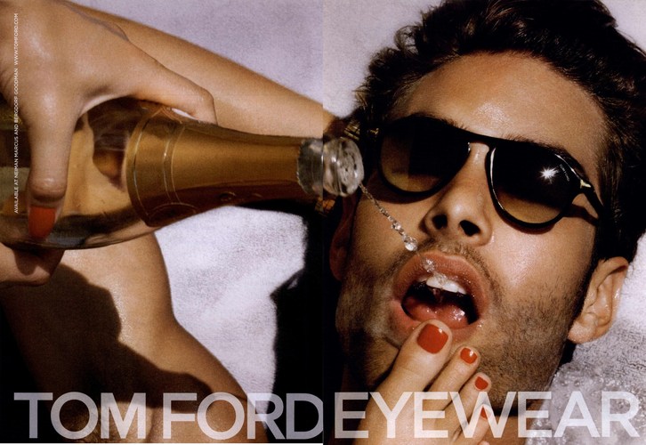 Рекламные кампании Tom Ford всегда находились на острие: на самой первой из них, вышедшей в 2006 году, позировала обнаженная модель в одних только очках. Но настоящий вызов был брошен ханжеской общественности в 2007 году, когда для съемки Том Форд пригласил скандального Терри Ричардсона. Реклама мужского парфюма Tom Ford for Men граничила с порнографией. Помимо женской наготы на снимках появилась и мужская. В интервью журналу Interview, которое у него брал популярный современный художник Джон Каррин (John Currin), дизайнер рассказал: «В современной культуре мы используем женскую обнаженную натуру, чтобы продавать все, что угодно. Нам просто удобно видеть женщину. Обнаженные ступни, ноги, пальцы, грудь, шея, руки – в рекламе выставляется все. Но мужская нагота заставляет нас нервничать». Эта реклама была запрещена повсеместно. Зато она стала достоянием современного искусства. Например, в 2009 году художник Матис Кесслер (Mathias Kessler) использовал снимок в работе «Вкус открытия» (The Taste of Discovery).