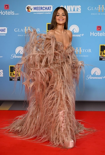 А в 2021 году певица доказала всем, что брючные костюмы могут быть не менее стильными, чем вечерние платья. Для церемонии премии MTV Europe Music Awards Рита Ора выбрала черный наряд без бретелей с облегающими штанами и корсетным топом, который был полностью задекорирован перьями.