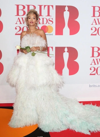 Как вы уже могли догадаться, перья — один из любимых стилевых приемов звезды. Их она не раз надевала для выходов на красные дорожки. В том числе и для премии BRIT Awards в 2018 году. Тогда певица блистала в эффектном белом платье и позировала перед камерой с розой в руках.