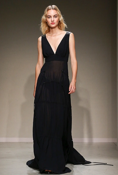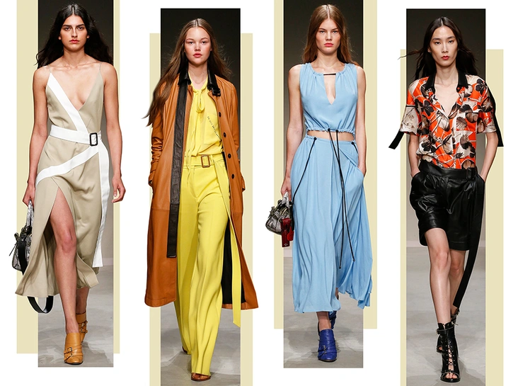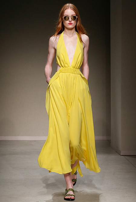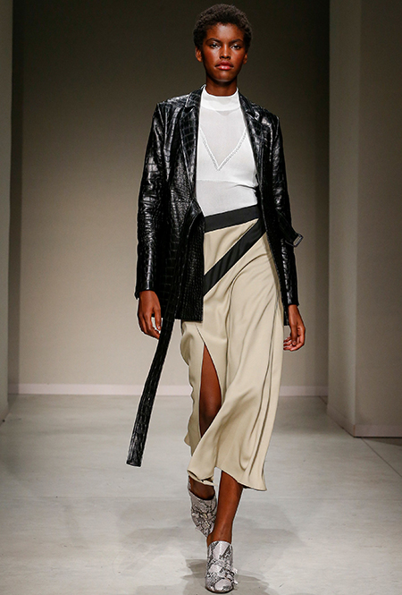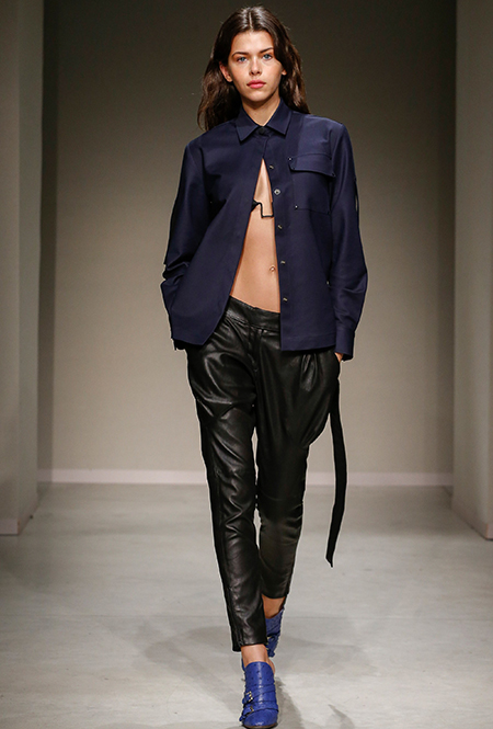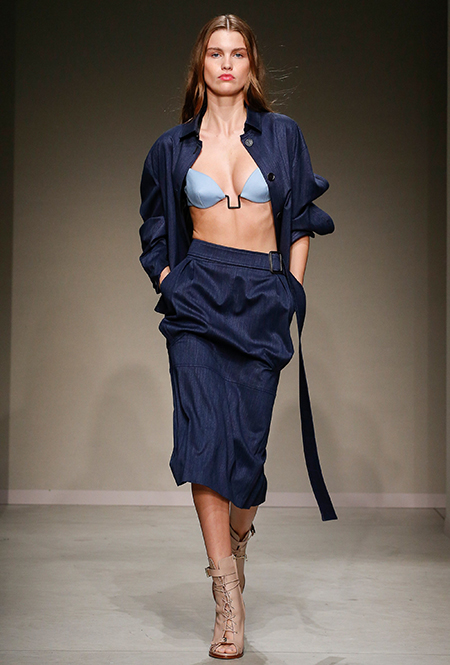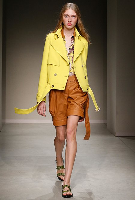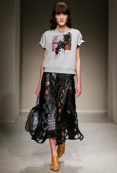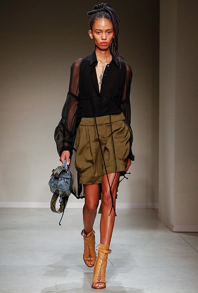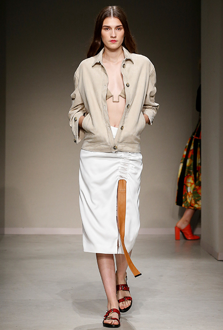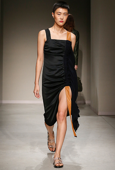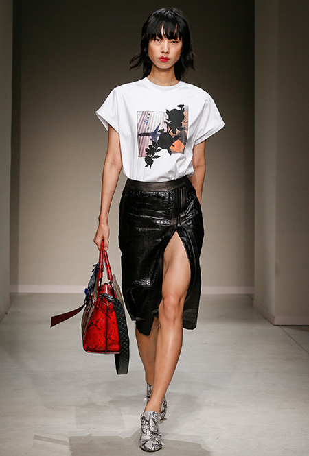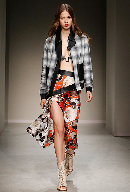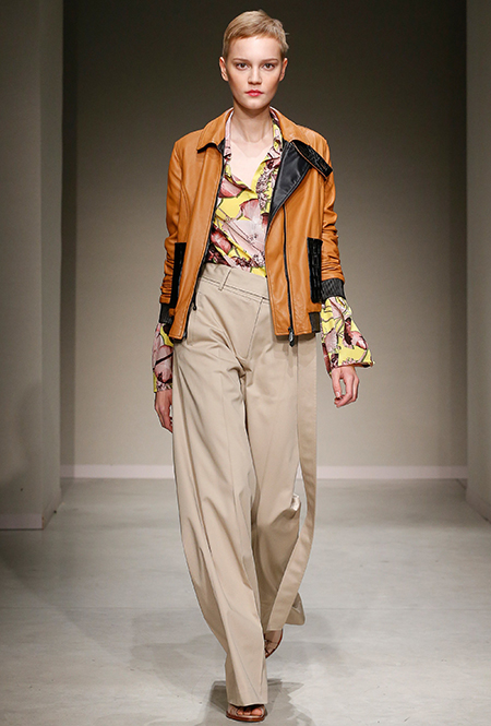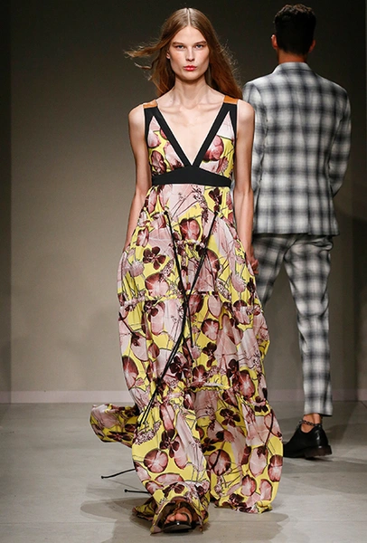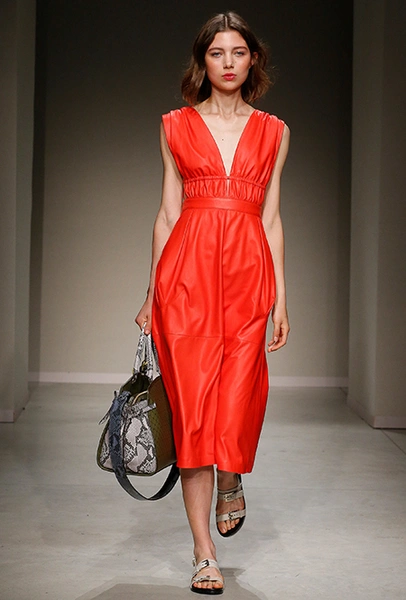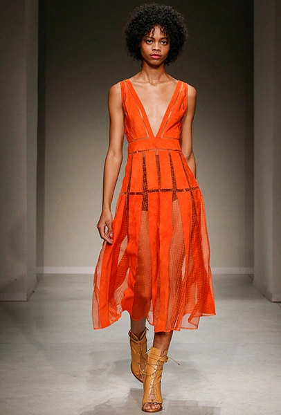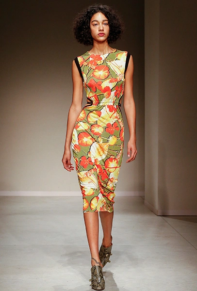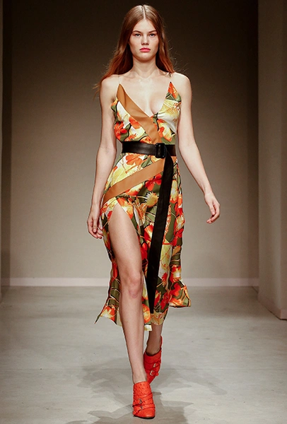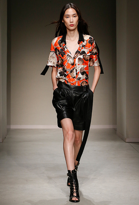 Весенне-летняя коллекция получилась одновременно и праздничной, и очень урбанистической и функциональной – с элементами стиля милитари. За праздник отвечают яркие облегающие платья и свободного кроя оранжевые юбки с крупными принтами в виде фруктов. Особенную прелесть юбкам придают вертикальные вставки из черной кожи. Те же вертикальные вставки, только полупрозрачные, украшают подол однотонного оранжевого платья, добавляя ему экстравагантности и соблазнительности.