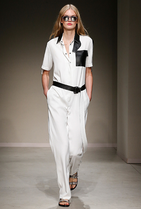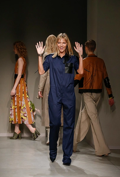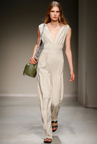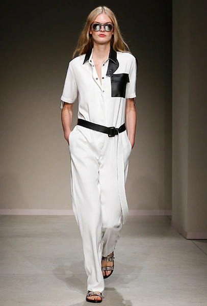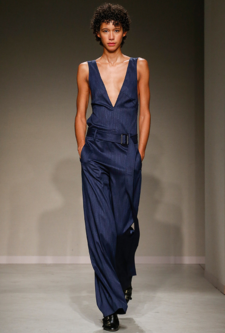 Они темно-синие, без рукавов, из плотного денима. Есть и белые – с воротом на пуговицах как у рубашки-поло. Но эффектнее всего смотрятся комбинезоны с контрастными накладными карманами из черной и бордовой кожи, причем креативный директор и наследница империи Trussardi Гайя Труссарди надевает их как на женщин, так и на мужчин – на последних они смотрятся абсолютно уместно и даже чуть более эффектно.