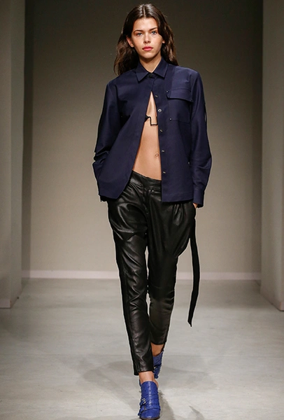Что до функциональности, то на этом поле играют прямые коричневые брюки, жакеты с крупными накладными карманами разных объемов, песочного цвета пальто и тренчи, мужские серые свитшоты и, конечно, комбинезоны – эту вещь можно без преувеличения назвать гвоздем программы.