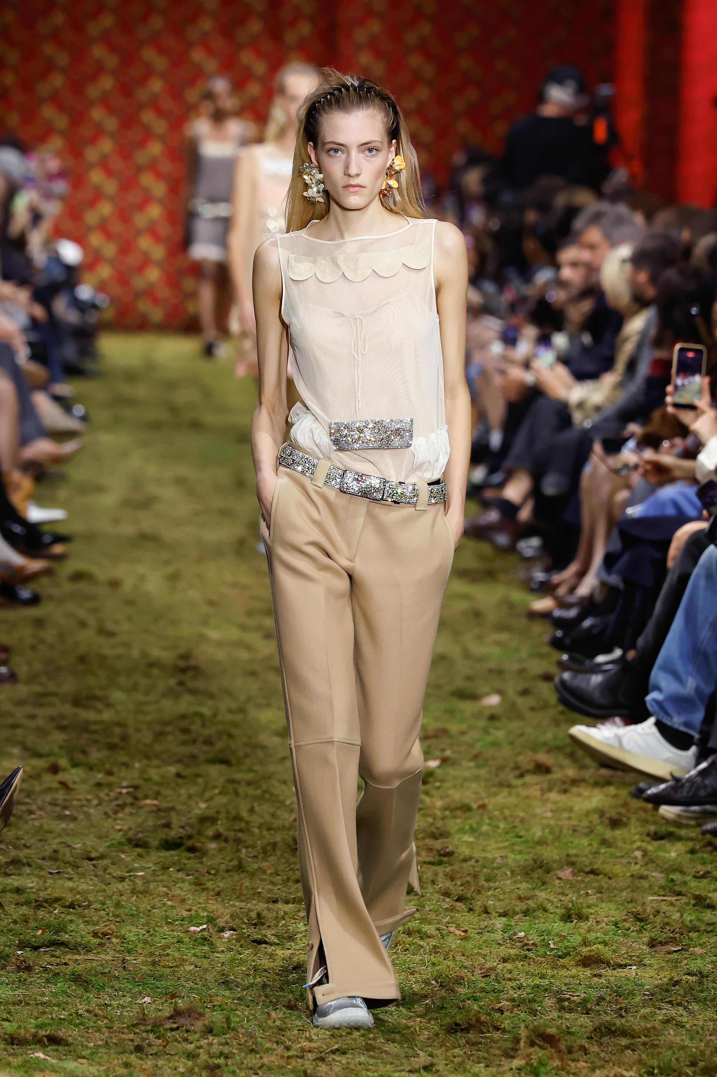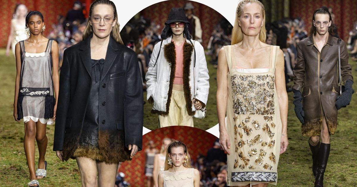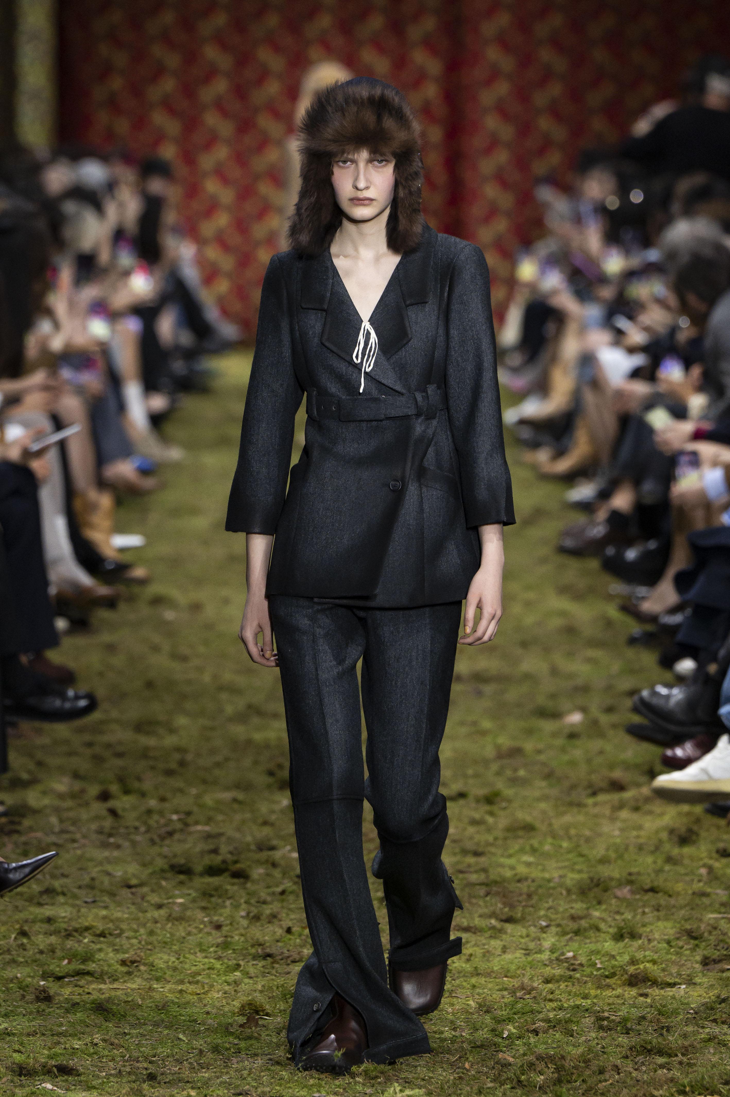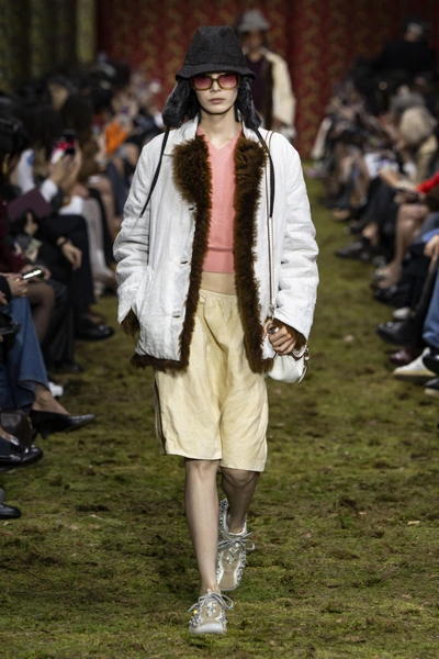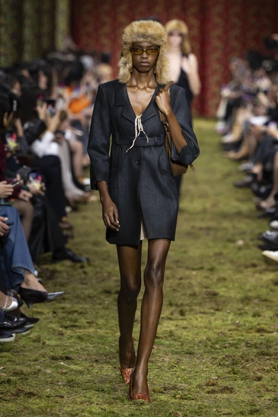 В прошлом сезоне Миучча Прада отсылала своих Miu Miu girls закрывать трудовую норму на фабрике, а теперь отправляет их в заслуженный отпуск на природе. Прогуляться среди полей и лесов предлагается в самых модных вещах сезона, стилизованных Лоттой Волковой.