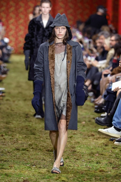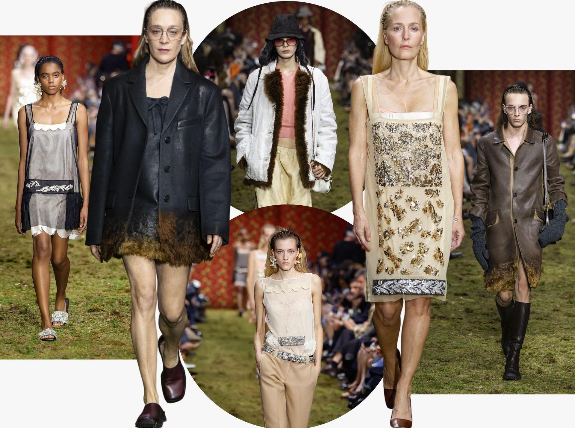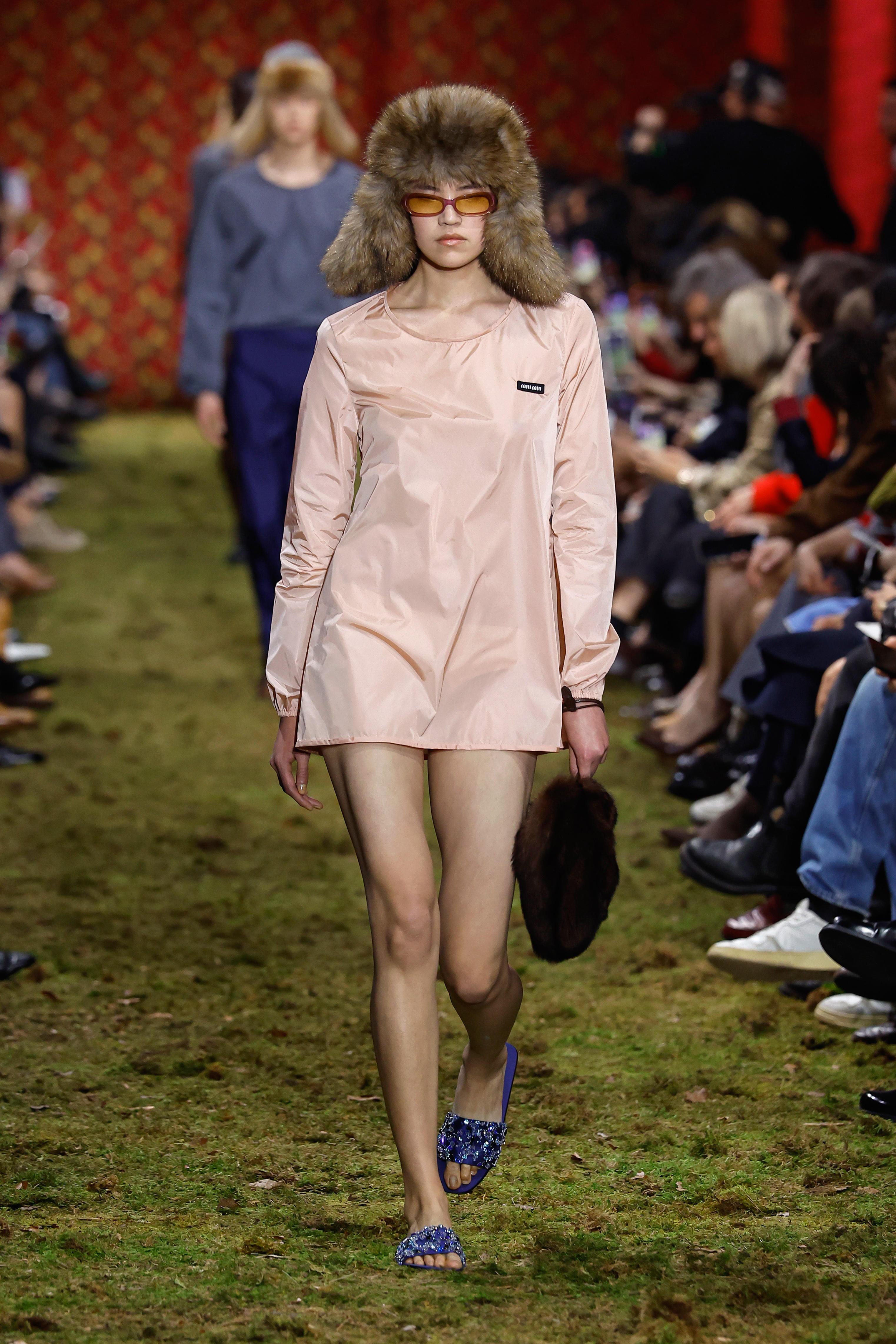 В прошлом сезоне Миучча Прада отсылала своих Miu Miu girls закрывать трудовую норму на фабрике, а теперь отправляет их в заслуженный отпуск на природе. Прогуляться среди полей и лесов предлагается в самых модных вещах сезона, стилизованных Лоттой Волковой.