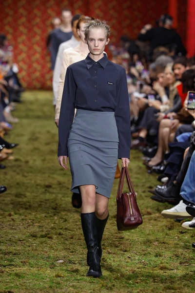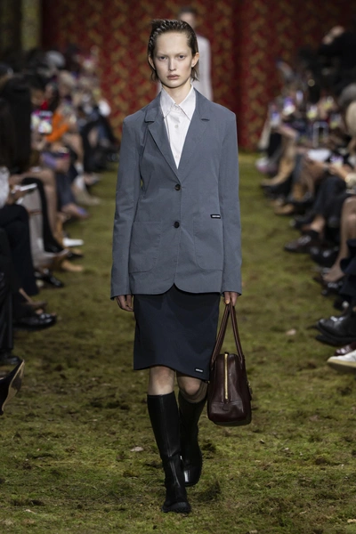 Приготовьтесь, дальше оно будет только усиливаться: все дизайнеры, не сговариваясь, переносят нас в офискор — жакет и юбка стали главной парой следующего сезона. Все тот же Демна заставляет нас ностальгировать по моде 90-х, показывая силуэтные двойки в лучших традициях Тома Форда. Матье Блази в Chanel усложняет их активными фактурами и свободным кроем. Шон МакГирр в McQueen отдает предпочтение строгим линиям и мини, а Питер Коппинг из Lanvin ставит на плечистые пиджаки. Миучча Прада же вновь ударяется в размышления об униформе, предлагая носить самые сдержанные варианты — удлиненные жакеты и юбки до середины колена.