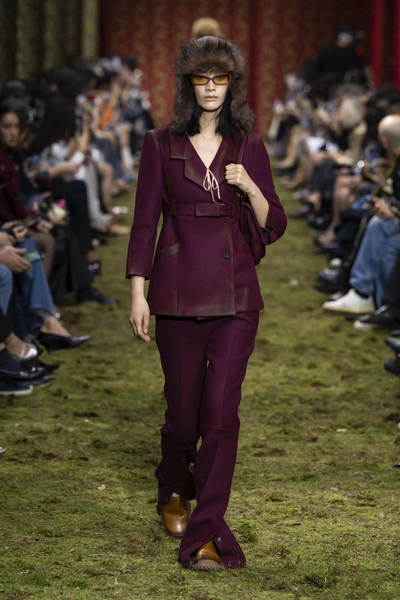 Носить все эти образы, разгоняющиеся от винтажного outdoor до ретро-бала, предлагается с одними и теми же аксессуарами. Если под эгидой slavic core вы так и не купили шапку-ушанку, пришло время насладиться ей в этом году. Уже осенью будем надевать ее и под строгие костюмы, и в паре с плюшевыми шубами, и с элегантными топами. К ним же выбираем сверкающие серьги крупного калибра, кожаные туфли в дедушкином стиле и низкие кеды.
