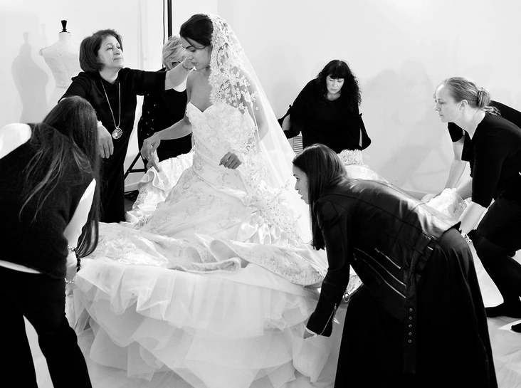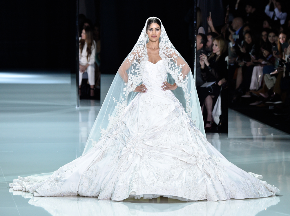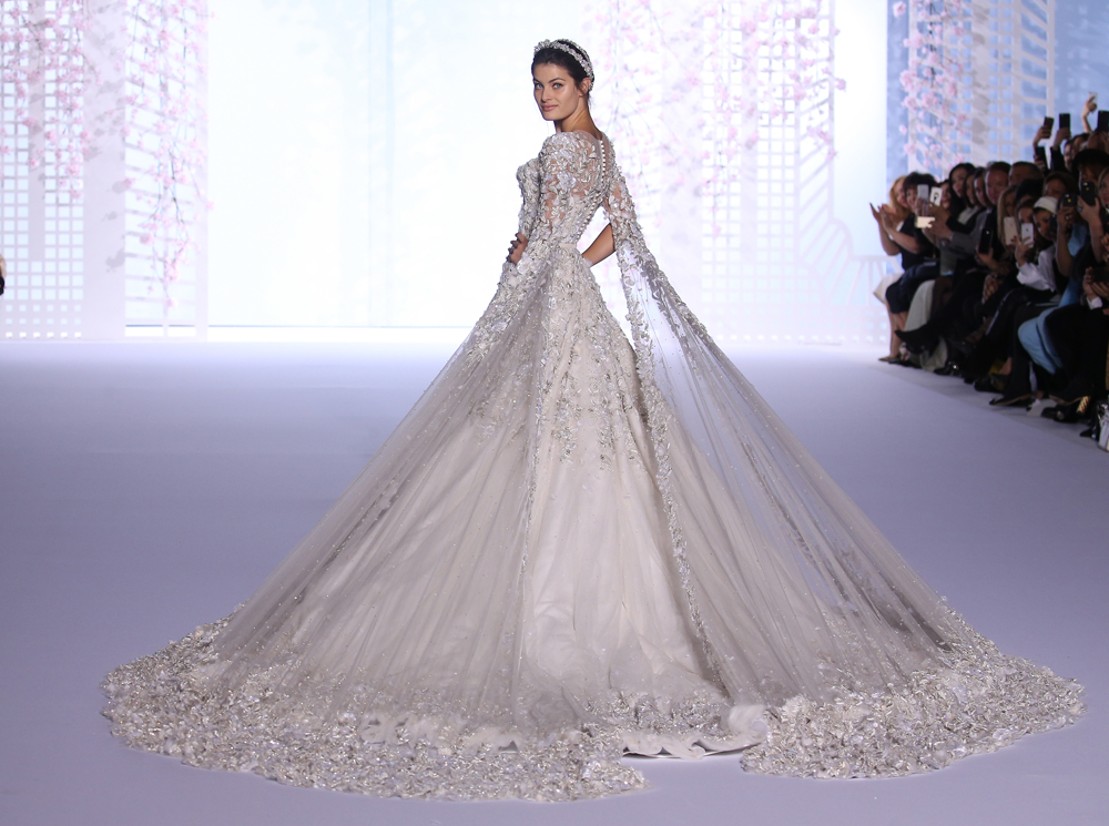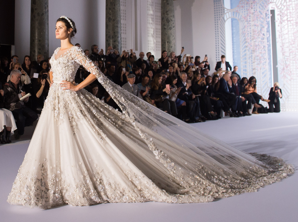 #4. Каждое кутюрное шоу бренда завершается свадебным платьем. В сезоне весна-лето 2016 года свадебный наряд Ralph & Russo стал самым большим за всю историю Недели. На его создание ушло 826 метров тюля и 46 метров органзы. Платье было украшено миллионами бусин, кристаллов и жемчужин, а также трехмерной ручной вышивкой. Кстати, о вышивке: только на нее потребовался труд 50 человек, которые на ее создание потратили 6000 часов. Чтобы вы понимали сколько это, 6000 часов — это 250 суток беспрерывной работы.