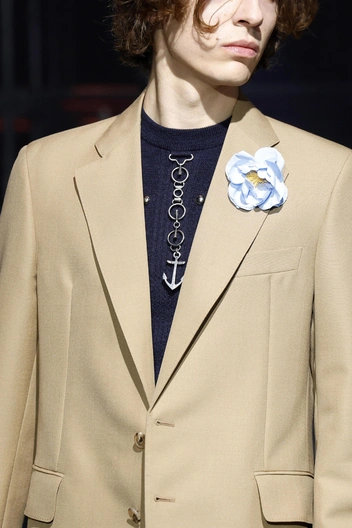 На прошедших коллекциях Миучча Прада заставила нас почувствовать приближение весны за счет обилия цветов — распространялись они и на мужской гардероб в виде брошей из ткани. Такой тренд легко повторить — брошь не содержит драгоценных камней, а сделана из простого материала, так что найти такое украшение будет просто. Плюс ко всему, это очередной унисекс-тренд: брошь сделает ярче и мужской, и женский образ (читайте также: Броши от Prada и благородный бархат: 10 трендов на сезон осень-зима 2025 с мужской Недели моды).