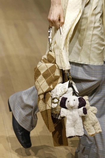 В 2024 году мы начали вводить в гардероб брелоки на сумках, и этот тренд останется с нами в следующие 10 месяцев. Coach показали максимально «детские» варианты с плюшевыми и крупными игрушками. Для более серьезных дам — классические металлические брелоки.