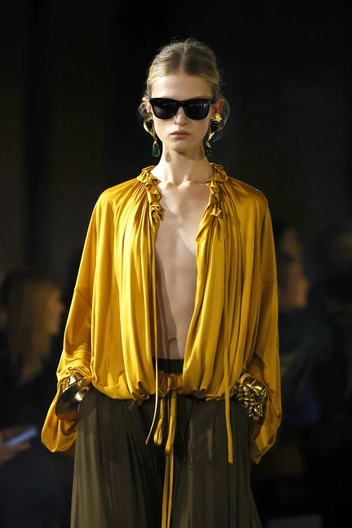 В сезоне весна-лето Энтони Ваккарелло зафиксировался на эстетике бохо и барокко, показав ее в более роскошном варианте, чем у Chloe. Отражается это во внушительных золотых украшениях — преимущественно браслетах, надетых на одну руку и украшенных камнями. Причем, благодаря тому, что барокко — стиль яркий, сочетать такие браслеты можем не только с монохромными образами, но и с принтами (читайте также: Платье в стиле Chloe, замшевые казаки и еще 4 вещи в стиле бохо-шик, которые нужны вам в 2025 году).