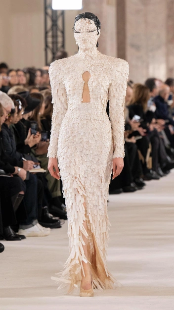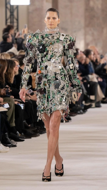 Тем не менее, из года в год самую высокую планку на Неделе Высокой моды задают Schiaparelli. На этот раз бренд снова поразил и восхитил. Удивительным образом в одной коллекции соединились тяга к футуризму и исторический дух. Поразило всех мини-платье, созданное с использованием кнопочных телефонов, калькуляторов и множества карт памяти, напоминая, насколько сильно цифровизация поглотила наш мир.