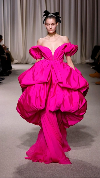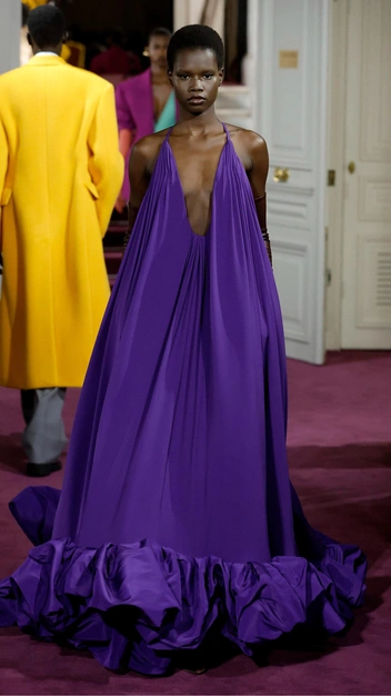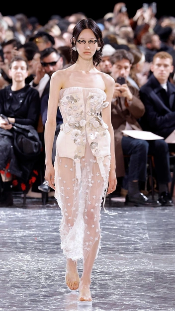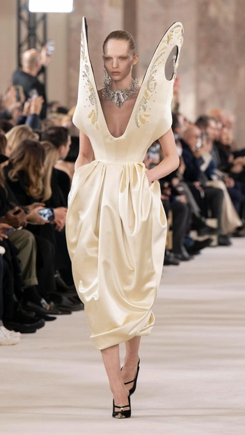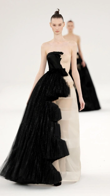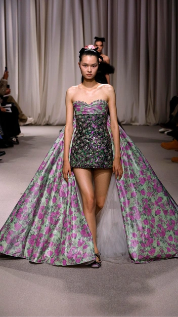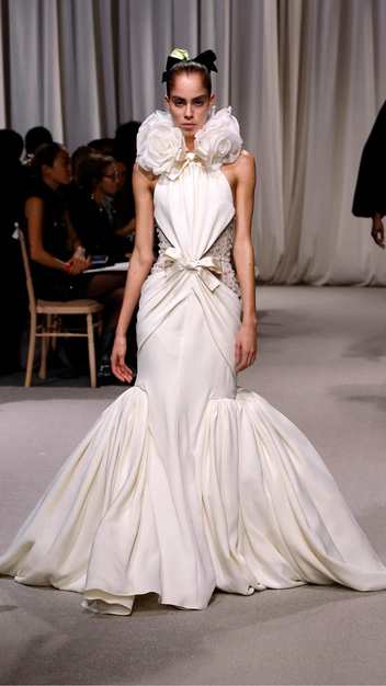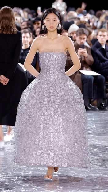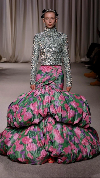 Однако никому из модельеров не удалась игра с силуэтами, как Джамбаттисту Валли в сезоне весна/лето 2024 на кутюрной Неделе моды. Он всегда был экстравагантным, но на этот раз на подиуме мы видим настоящий букет. Роза Трианон стала главным символом коллекции, которая раскрывается из узкого и жесткого бутона в прелестный цветок. Мать природа — высшая ценность, данная нам: она вольна, пышна и роскошна, она вдохновляет, побуждает и умиротворяет (читайте также: 10 модных правил Кейт Мосс, которые сделали ее иконой стиля).