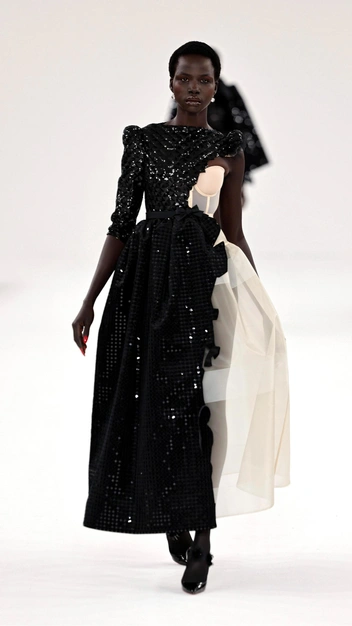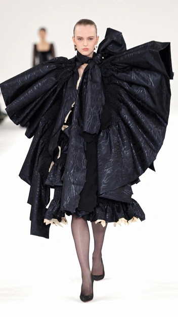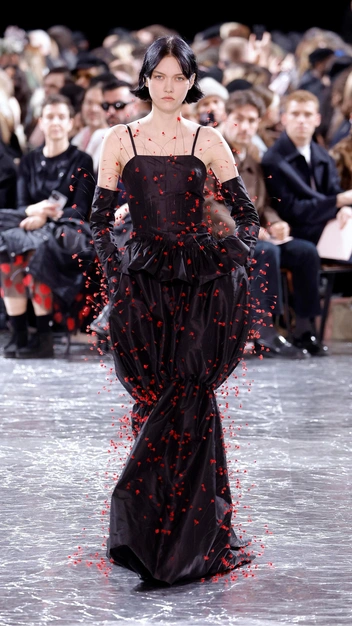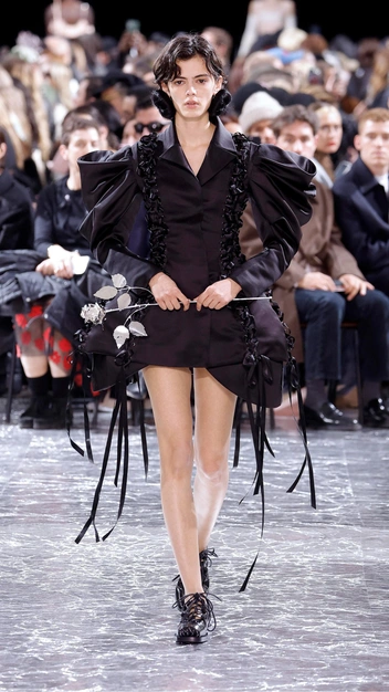 Коллекция получилась драматичной и провокационной, чего и хотела достичь по итогу дизайнер. На этот раз Симон Роша искусно поработала с черным цветом, не свойственным для ее работ. Угловатые юбки и пышные рукава нежно перекликаются с атласной шнуровкой и длинными лентами в стиле Simone Rocha, но быстро приходят на место, как только мы замечаем в руках металлическую розу, корсеты и пояса наряду с кожаными перчатками (читайте также: Все лучшее сразу: самые дорогие звездные украшения, от которых замирает сердце).