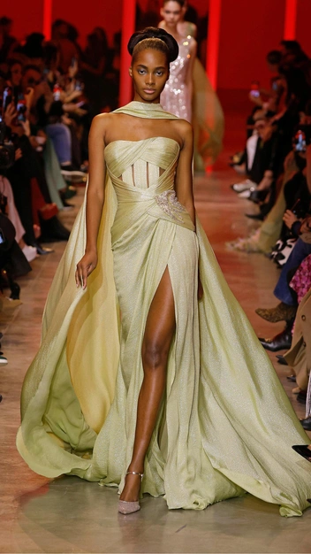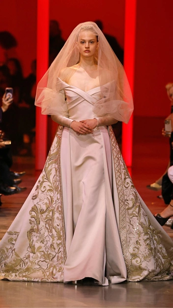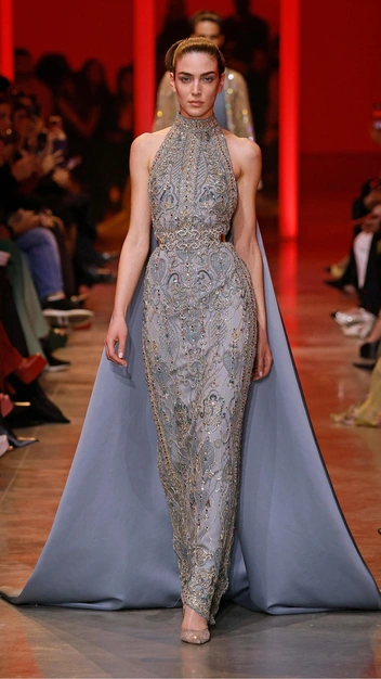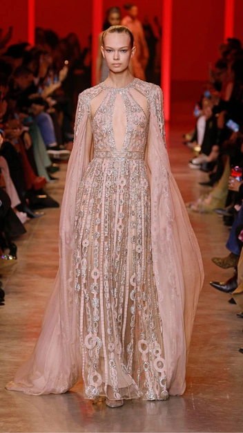 В каждой детали — дух Марокко: геометрия напоминает архитектуру страны, а струящиеся ткани, длинный шлейф и складки на подсознательном уровне словно разговаривают с нами так, как шумит в пустынях песок. Золотые узоры, расшитые на роскошных платьях, показывают зрителям знаменитые марокканские интерьеры.