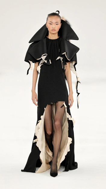 Перед нами еще один дизайнер, который говорит на языке искусства. Именно поэтому вы можете наблюдать похожие сложные силуэты платьев, как и в коллекции Симон Роша для Jean Paul Gaultier, похожие, разумеется, на цветы. Впрочем, стебли и раскрывшиеся бутоны всегда были источником вдохновения для модельеров, и самый главный пример, который раз и навсегда изменил мир моды — Кристиан Диор и его знаменитый силуэт New Look.