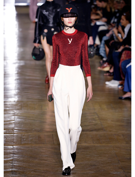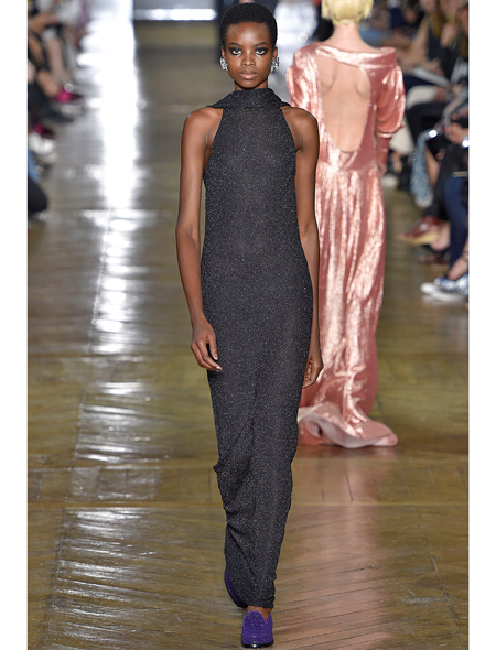 Шлемы работы Стивена Джонса, плащи, жакеты с большими отложными воротниками и шубы с чьего-то большого плеча, наконец, сменяются моделями в искрящихся вечерних нарядах. И, разумеется, «лабутены», чью фирменную красную подошву невозможно не заметить: третий сезон подряд Ulyana Sergeenko сотрудничает с Chistian Louboutin. Результатом этой коллаборации стали высокие лоферы из бархата и лакированной кожи.