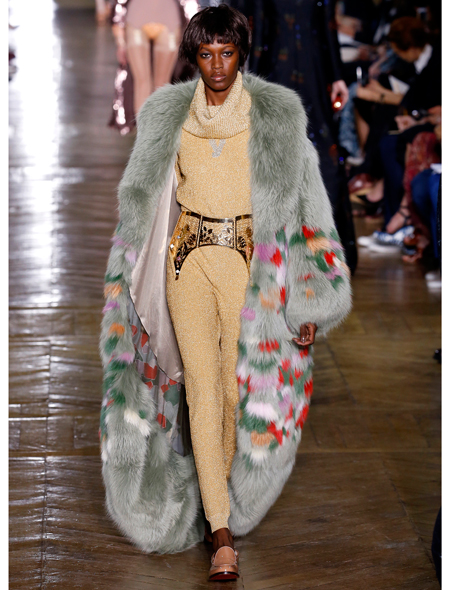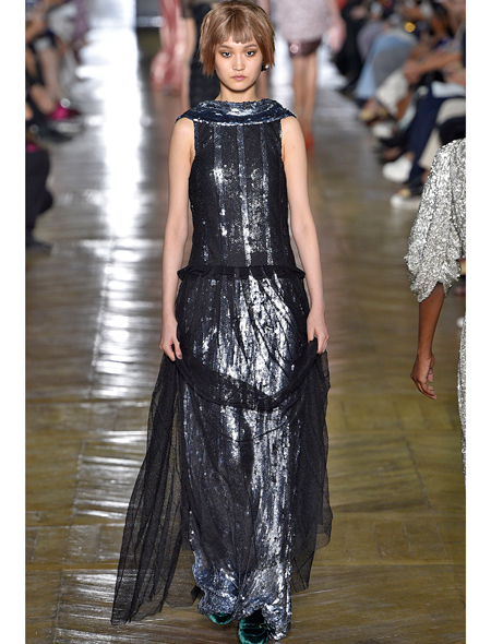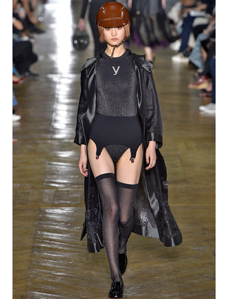 Люрекс (если вы не помните, что это такое – спросите у бабушек) и парча, плюш и натуральный мех, нейлон и лаковая кожа – основные материалы новой коллекции. Бельевая тема, которая так популярна в наши дни, раскрыта более чем: искрящиеся (все тем же люрексом) боди, неопреновые бельевые пояса-баски, рекомендованные к употреблению поверх брюк и юбок, или вместо них, по прямому назначению – держать любимые бабушками нейлоновые чулки. Отдельного внимания заслуживают плотные колготки а-ля «советское детство» – красноречиво сморщившиеся под коленками и на подъеме стоп моделей. Только теперь это называется «кутюр».