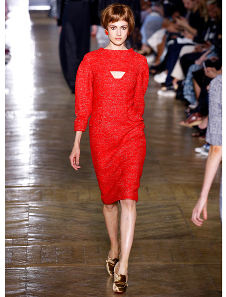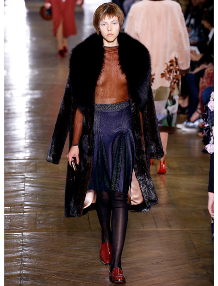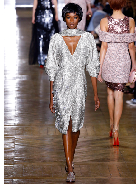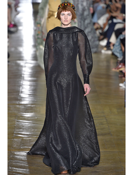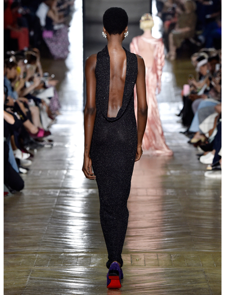 Шлемы работы Стивена Джонса, плащи, жакеты с большими отложными воротниками и шубы с чьего-то большого плеча, наконец, сменяются моделями в искрящихся вечерних нарядах. И, разумеется, «лабутены», чью фирменную красную подошву невозможно не заметить: третий сезон подряд Ulyana Sergeenko сотрудничает с Chistian Louboutin. Результатом этой коллаборации стали высокие лоферы из бархата и лакированной кожи.