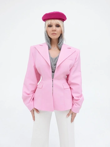 Черный цвет — не единственный в гардеробе «роковой женщины». Выбирать можно и пастельные тона, например, розовый, молочный или голубой, но в таком случае поработать следует с кроем изделия. Вещь должна быть фактурной, из плотного качественного материала, который позволит держать ей форму. Певица Валерия отдала предпочтение приталенному жакету с акцентными плечами и дополнила его расклешенными брюками, блестящим топом и беретом в оттенке фуксия.