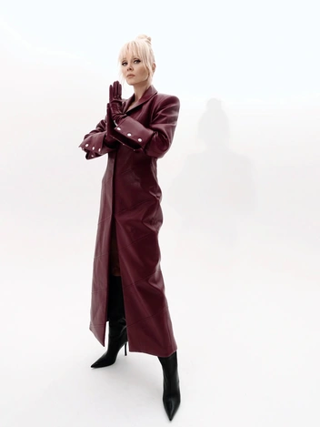 Кожа — главный подиумный тренд последних сезонов. Самые модные женщины надевают эффектные плащи, безупречные остроносые сапоги на тонком каблуке и дополняют образы перчатками. Для эксперимента Валерия выбрала верхнюю одежду приталенного кроя в роскошном оттенке бургунди и подобрала ей в тон перчатки. Аксессуары из кожи, кстати, можно носить и с контрастными предметами гардероба: шелковыми платьями, трикотажными топами без рукавов или шерстяными пиджаками, прежде подвернув рукава.