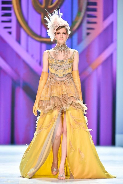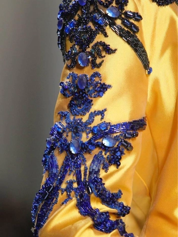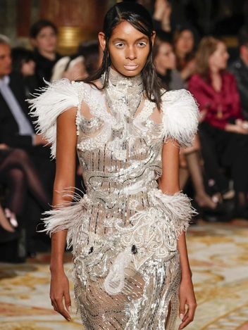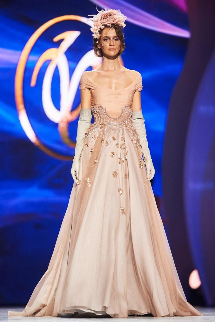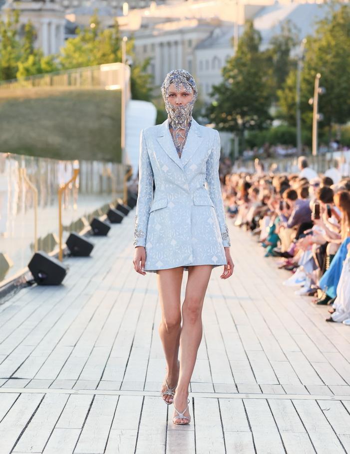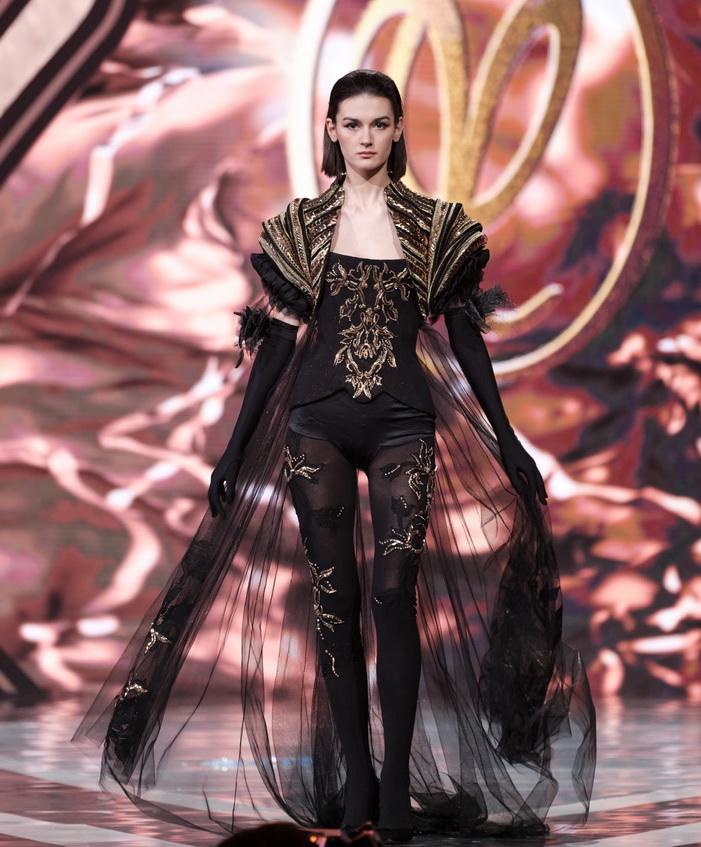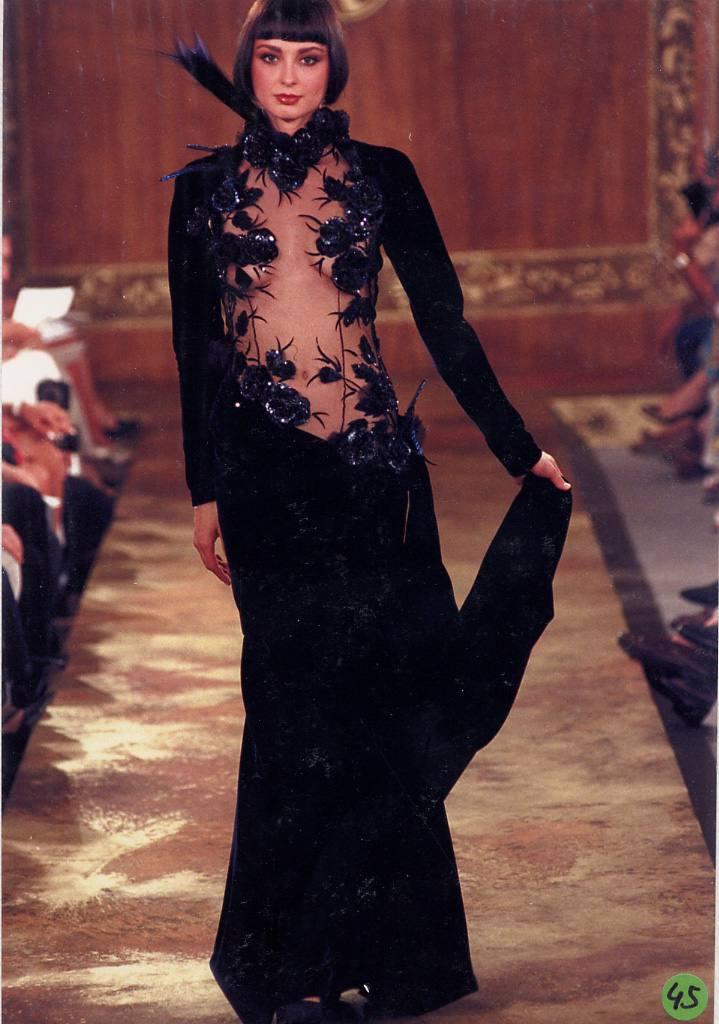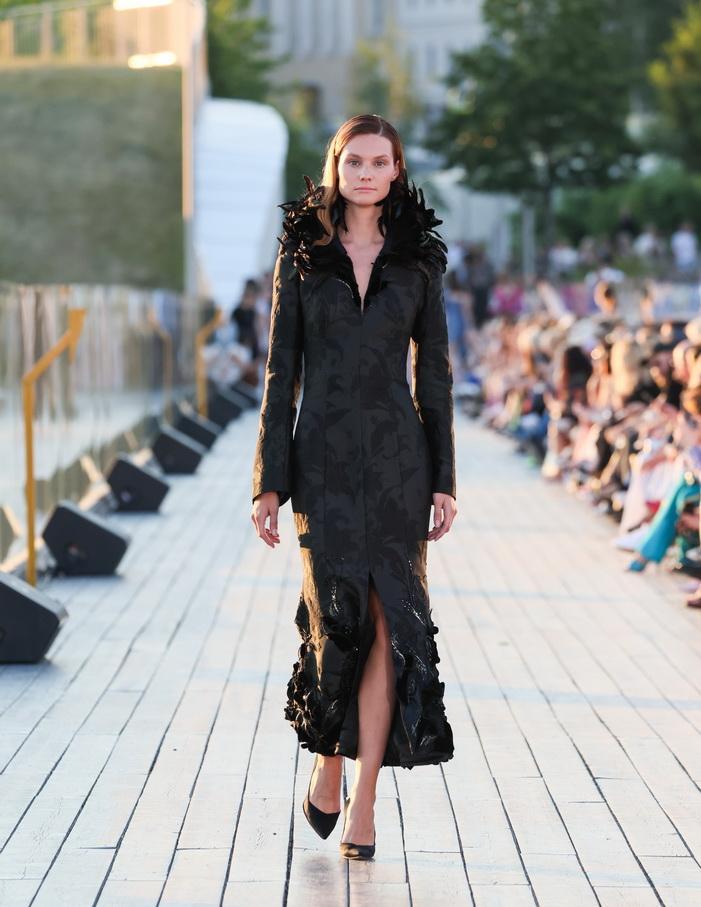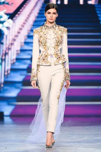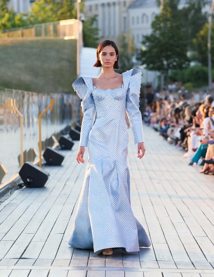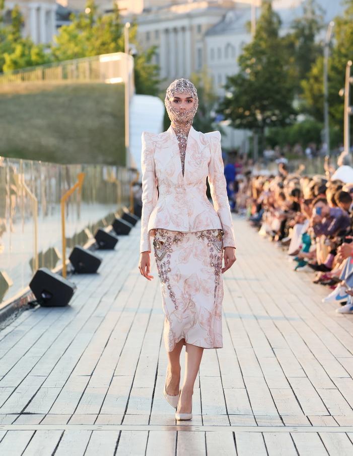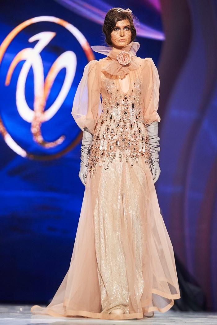 Модельер часто черпал вдохновение во Франции, перекладывая на мир костюма элементы, которые он замечал то в нежных французских садах, то в бурлящих роскошью костюмах эпохи Людовика XVI. Перья, вышивка, бисер, бусины — Юдашкин никогда не скупился на декор и легко мог украсить свою одежду натуральным жемчугом. Ну а в последнее время в его декоре начала прослеживаться нотка дерзости — то это балаклавы, расшитые драгоценными камнями, то слои цепей и бахромы, напоминающие кольчугу. Средневековые отсылки, тем не менее, по-прежнему соседствовали с фирменной для Юдашкина нежностью и женственностью.