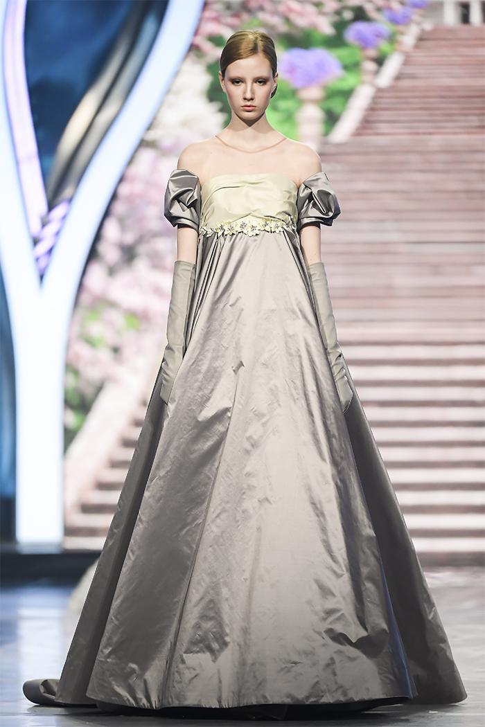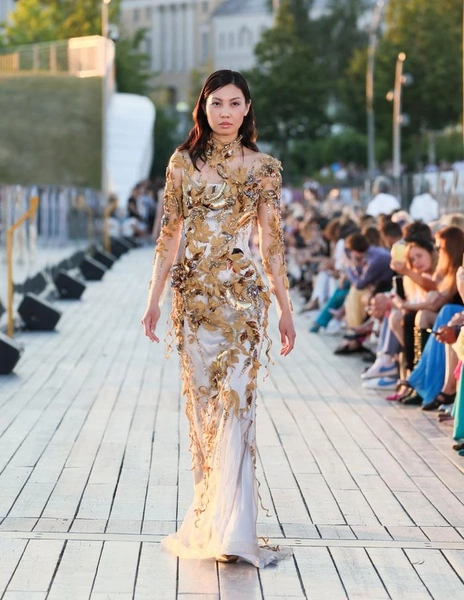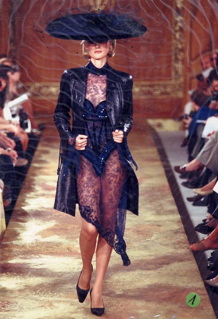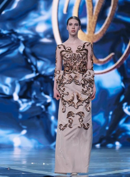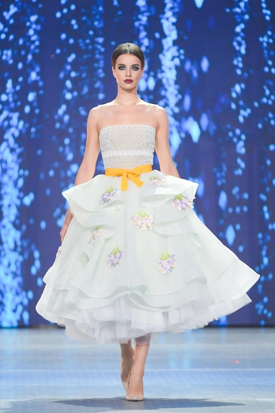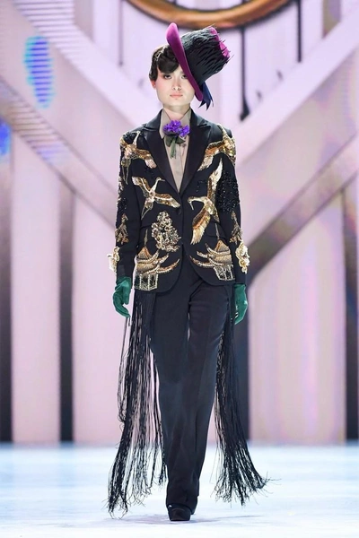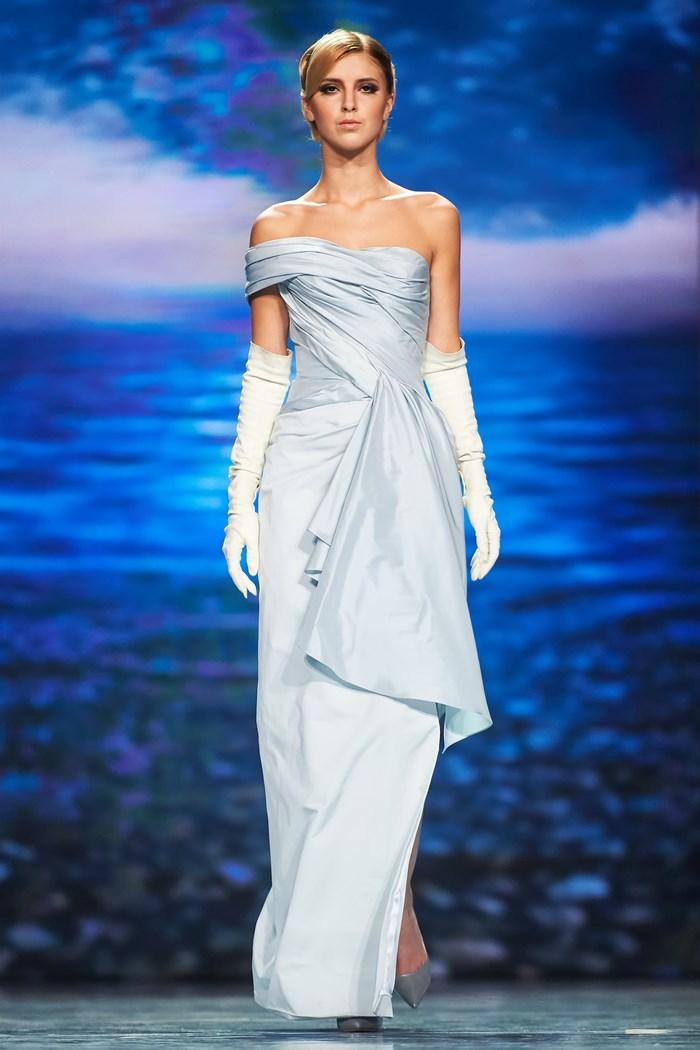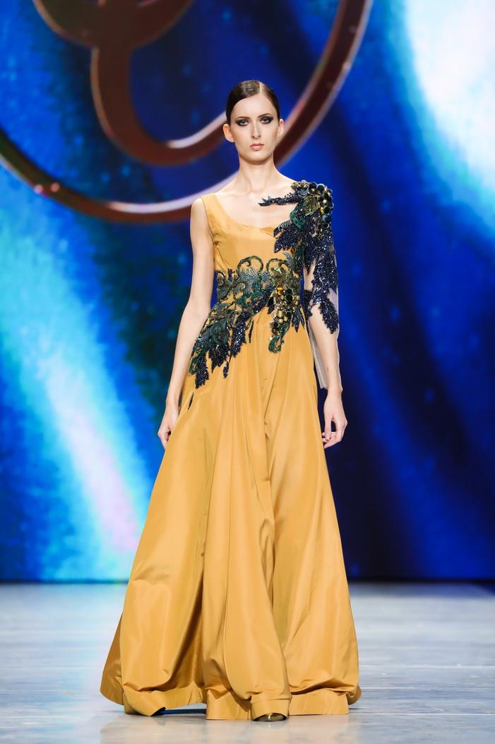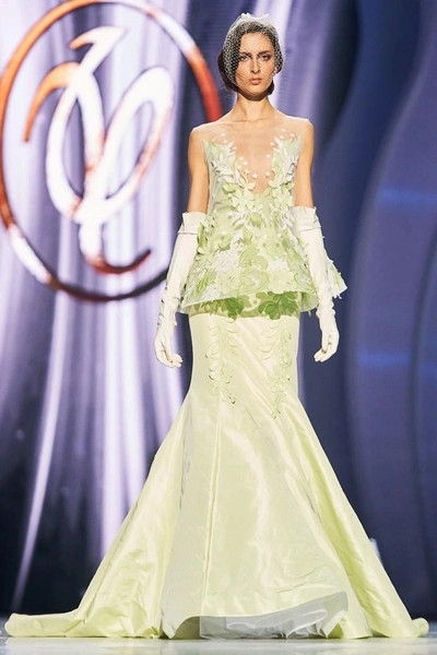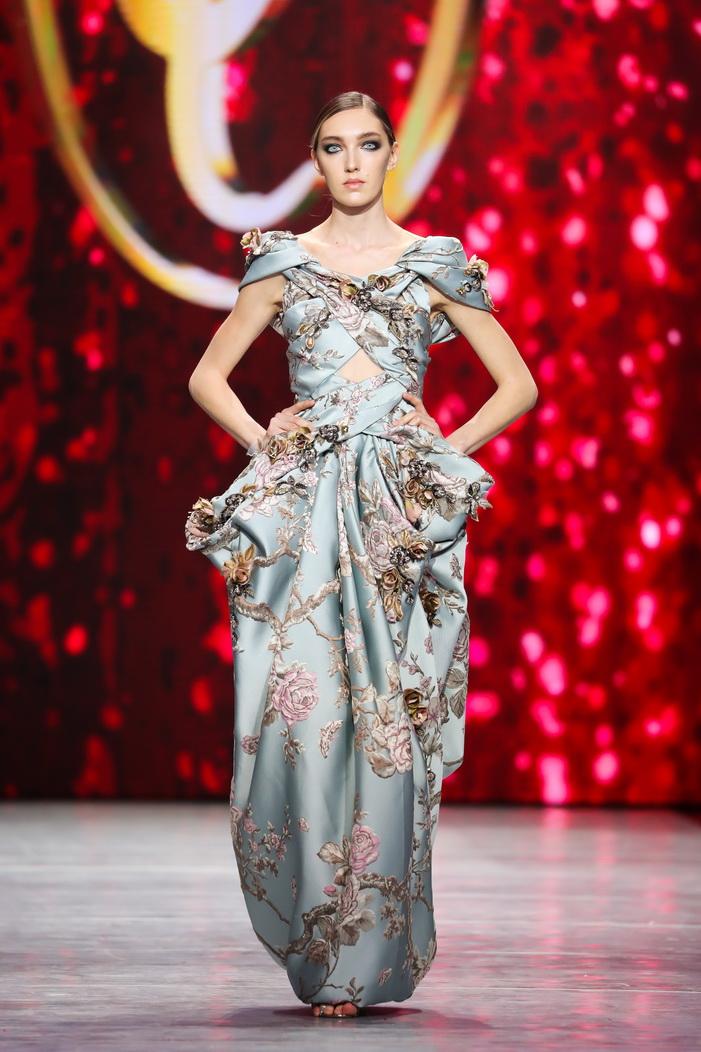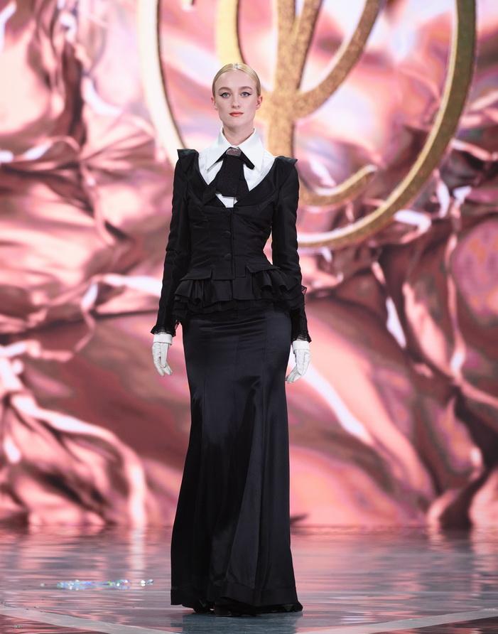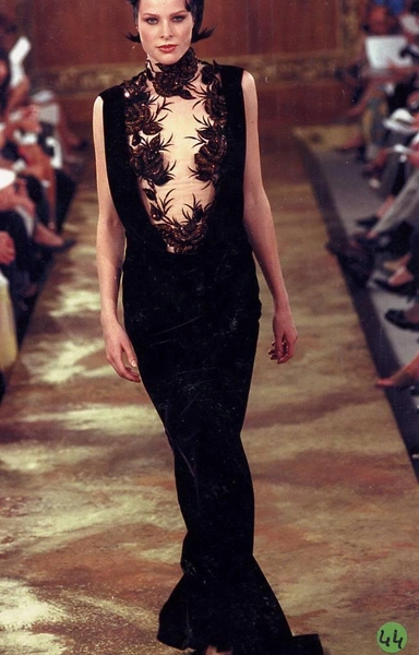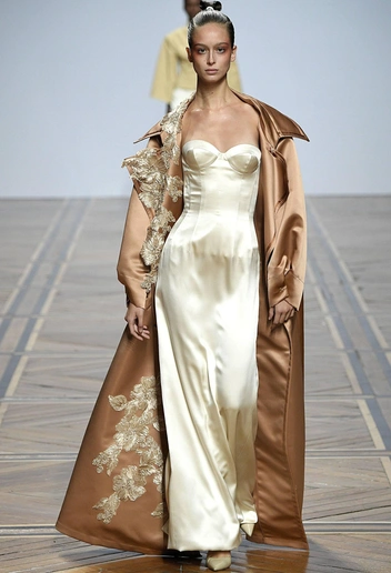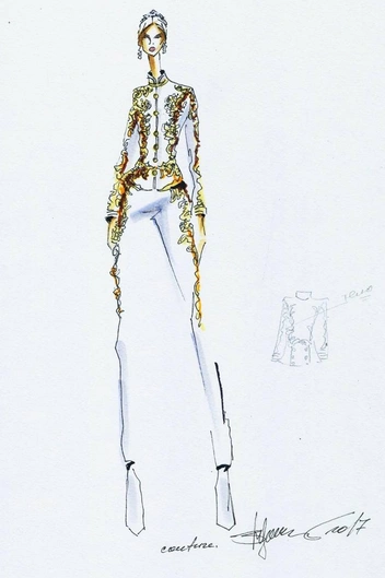 Модельер часто черпал вдохновение во Франции, перекладывая на мир костюма элементы, которые он замечал то в нежных французских садах, то в бурлящих роскошью костюмах эпохи Людовика XVI. Перья, вышивка, бисер, бусины — Юдашкин никогда не скупился на декор и легко мог украсить свою одежду натуральным жемчугом. Ну а в последнее время в его декоре начала прослеживаться нотка дерзости — то это балаклавы, расшитые драгоценными камнями, то слои цепей и бахромы, напоминающие кольчугу. Средневековые отсылки, тем не менее, по-прежнему соседствовали с фирменной для Юдашкина нежностью и женственностью.