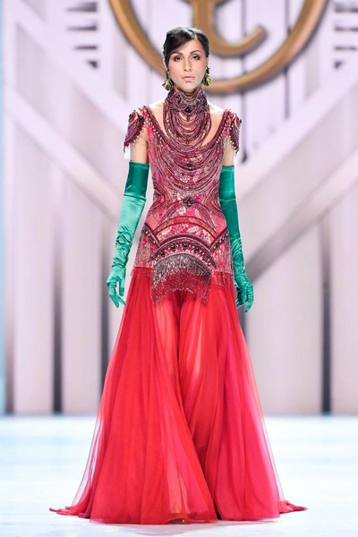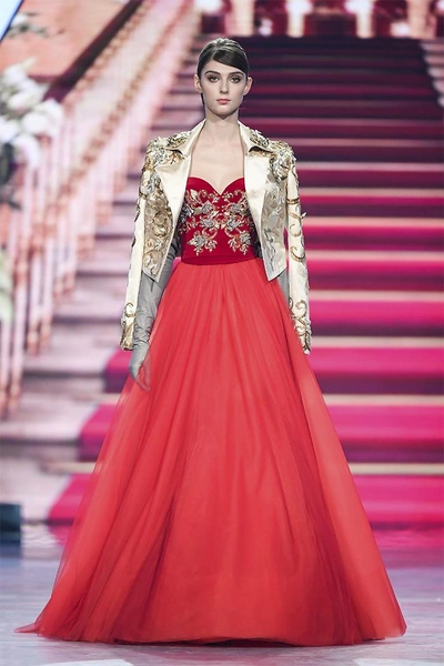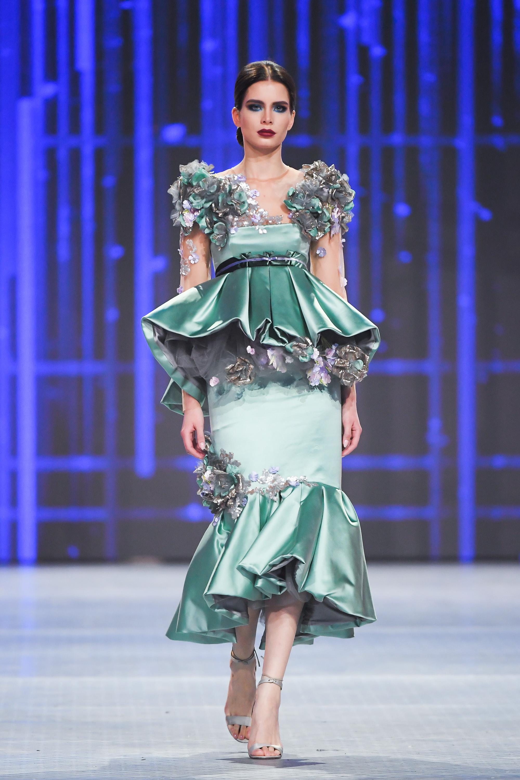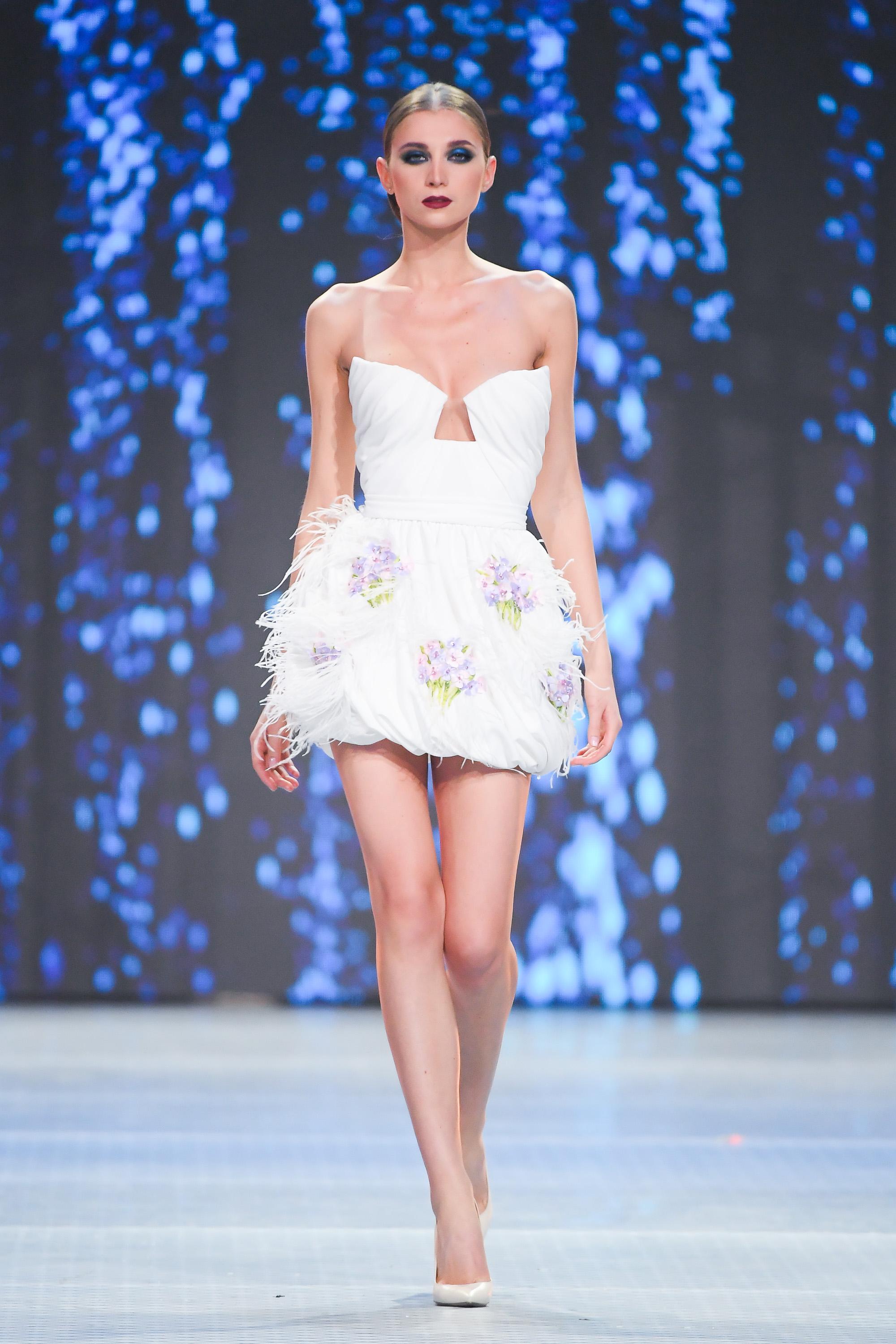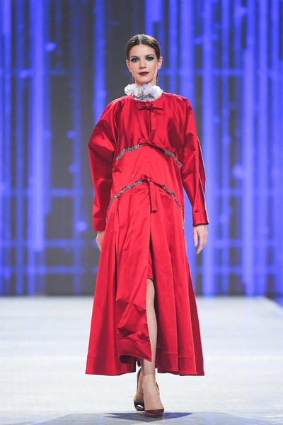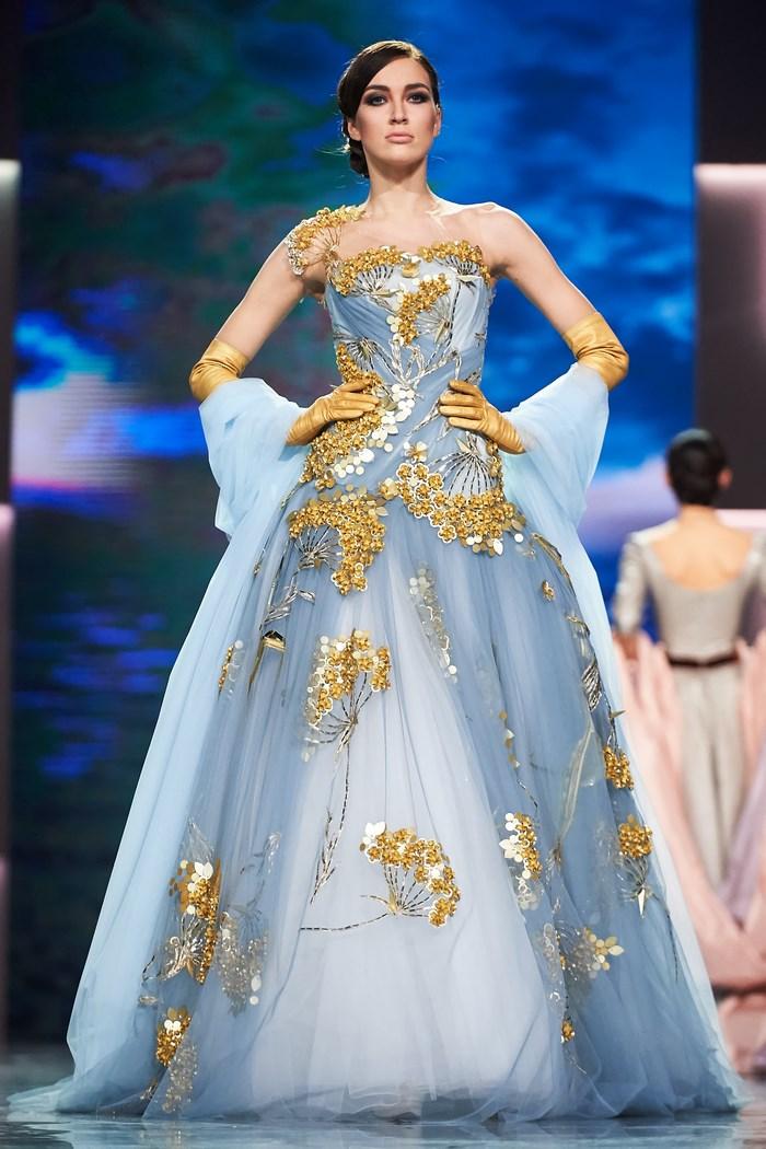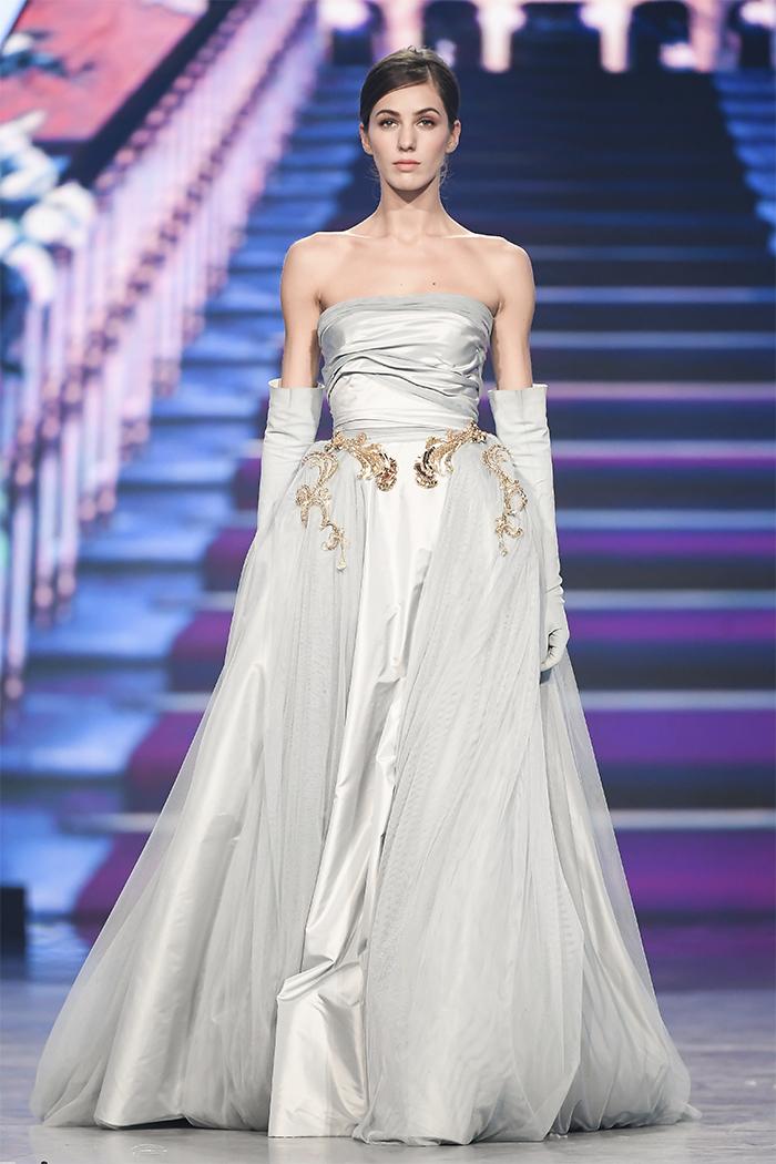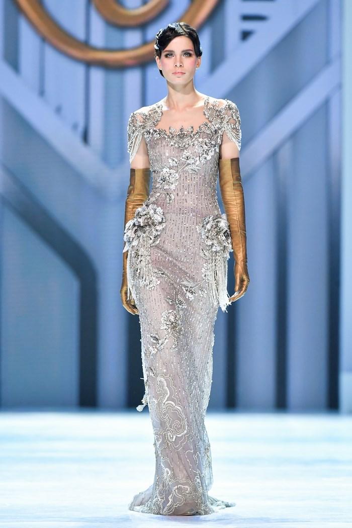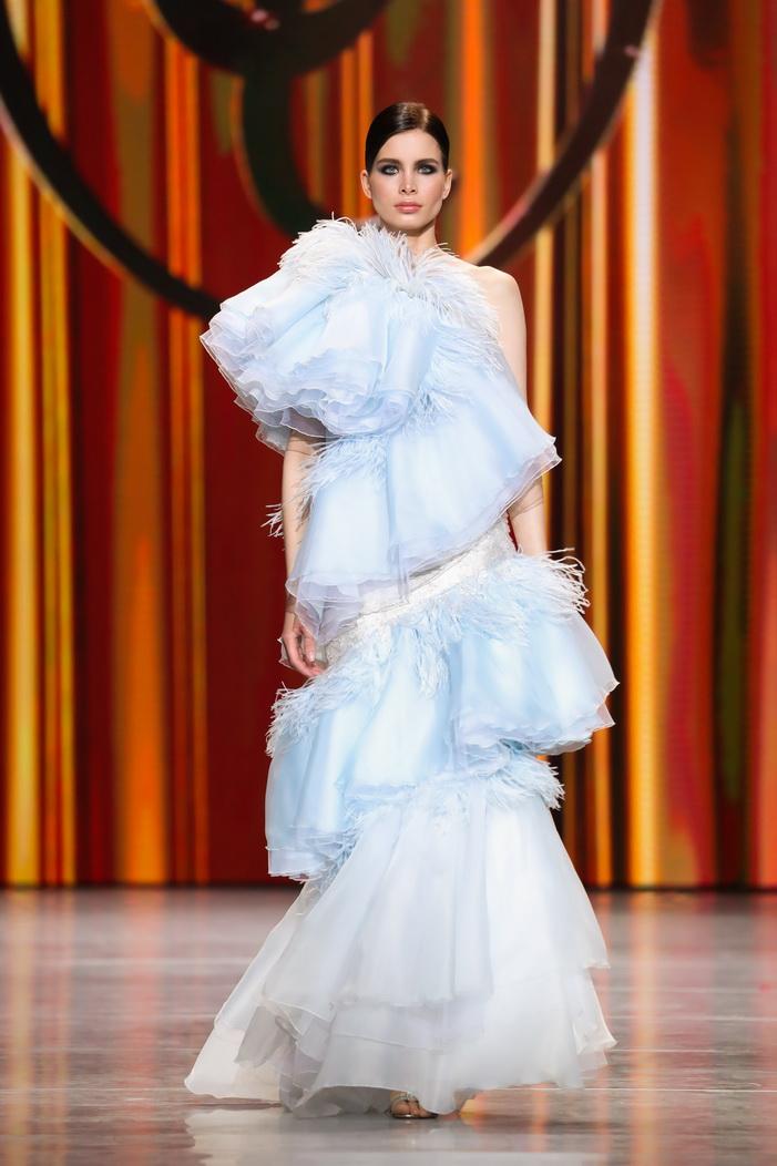 Модельер часто черпал вдохновение во Франции, перекладывая на мир костюма элементы, которые он замечал то в нежных французских садах, то в бурлящих роскошью костюмах эпохи Людовика XVI. Перья, вышивка, бисер, бусины — Юдашкин никогда не скупился на декор и легко мог украсить свою одежду натуральным жемчугом. Ну а в последнее время в его декоре начала прослеживаться нотка дерзости — то это балаклавы, расшитые драгоценными камнями, то слои цепей и бахромы, напоминающие кольчугу. Средневековые отсылки, тем не менее, по-прежнему соседствовали с фирменной для Юдашкина нежностью и женственностью.