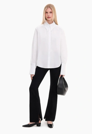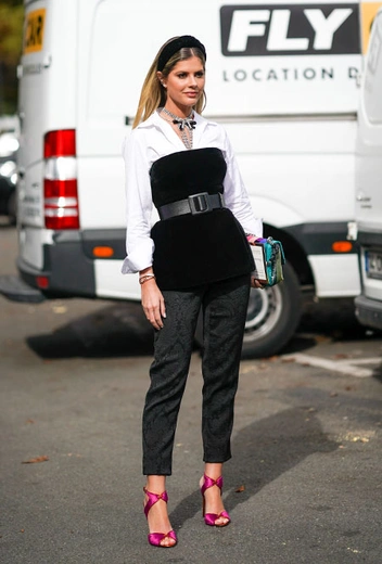 В офисной капсуле белая рубашка — самая незаменимая вещь. Именно она призвана сделать так, чтобы вам не казалось, что ваш гардероб рассчитан только на банальные и избитые сочетания. Смело миксуйте рубашку с другим «верхом» — например, добавляйте к ней трикотажный топ и жакеты разных расцветок. Если дресс-код вашей компании более лоялен, рубашку можно надеть поверх водолазки или оставить небрежно расстегнутой. Самое главное — не бояться пробовать различные комбинации (читайте также: Как носить водолазку: 7 нескучных способов).
