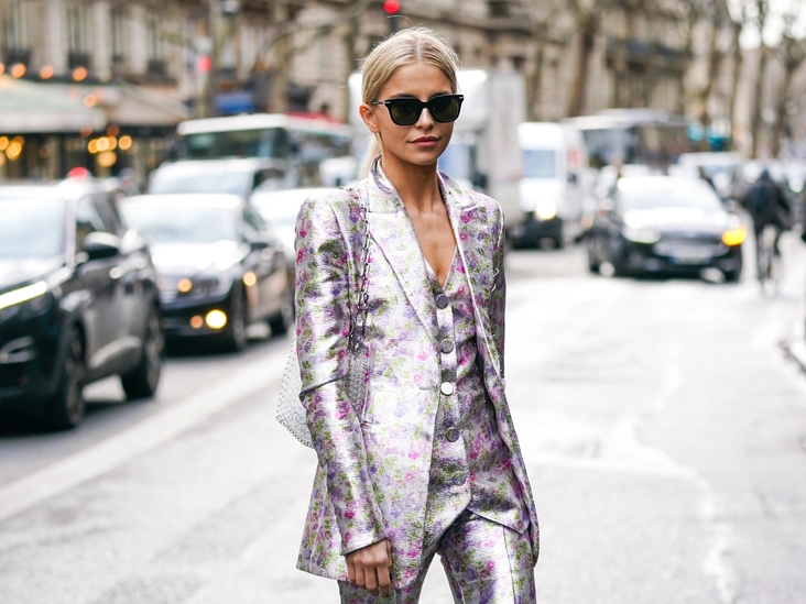 Романтичная блузка с цветочным принтом сгладит строгость костюмных линий и добавит вашему образу нежности и женственности. В таком образе можно появиться в офисе или пойти в театр. Это одновременно и нарядный и элегантный комплект (читайте также: Как одеться в театр: актуальные образы и современные правила).