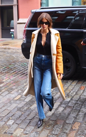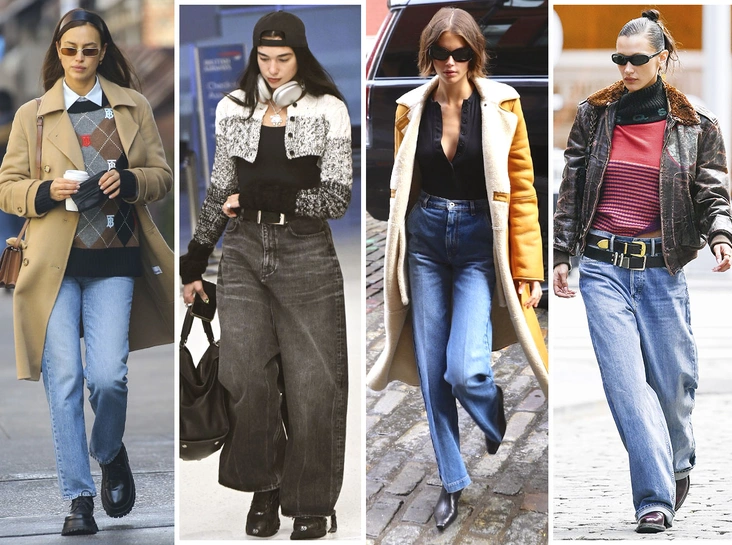 Эта свободная и удобная модель джинсов стремительно завоевала популярность. В холодное время года палаццо можно дополнить укороченным пуховиком или плащом, создав оверсайз-образ. Еще они очень практичны в минусовую температуру — под них можно надеть плотные колготки или кальсоны для дополнительного тепла.