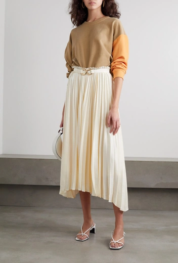 Любимый уютный свитшот можно смело носить поверх легкого платья, а завершить получившийся образ советуем кедами или кроссовками. Также подойдут свободные миди-юбки и даже юбки-карандаш. Последние особенно актуальны из материалов под кожу.