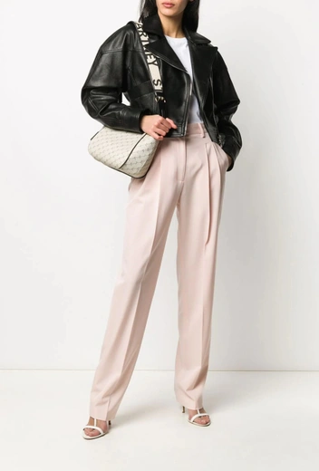 Короткая кожаная куртка сделает акцент на талии и сбалансирует свободные фасоны других вещей из образа. В данном случае рекомендуем выбирать модели белого, черного и темно-коричнево цвета, а яркие модели отложить для других случаев.
