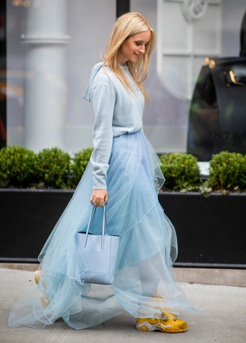А на каждый день сочетайте вечерние юбки с более нейтральными вещами, чтобы выглядеть гармонично в повседневных образах. Это может быть белая хлопковая рубашка или свитер в нейтральных тонах.