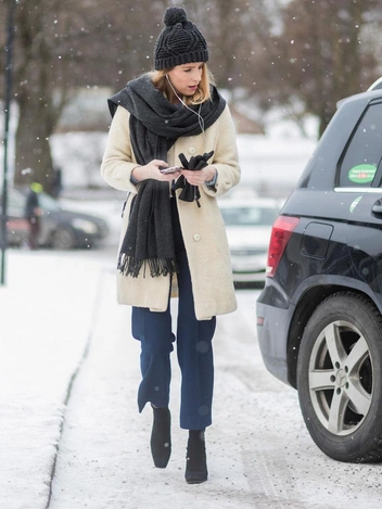Продуманный и аккуратно исполненный комплект одинакового цвета и вязки сегодня навевает скуку и упрощает образ. В тренде яркие акценты, поэтому экспериментируйте и носите разноплановые шапки-бини, объемные шарфы и броские варежки — такой подход способен освежить весенний аутфит в прохладную погоду и придать ему новые краски.