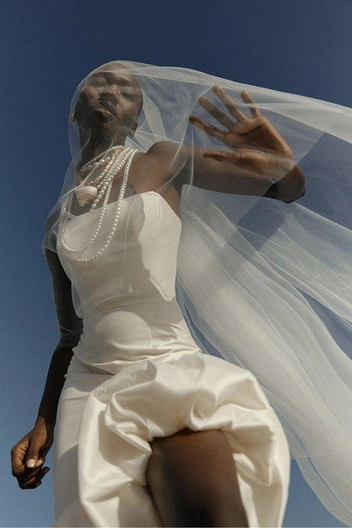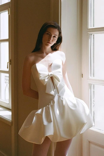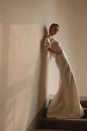 Свадебная капсула Muus изобилует оригинальными и нетривиальными силуэтами. Это идеальный выбор для современных невест, которые хотят подчеркнуть свою индивидуальность. Здесь собраны необычные дизайнерские решения: платье-баллон, жилетка, юбка с разрезом в виде сердца и даже бомбер.