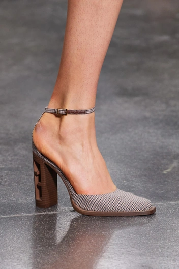 Элегантные закрытые туфли на каблуке с тонким ремешком — модель вне времени, но через полгода такая обувь будет особенно популярна. Эти туфли будут круто смотреться с юбками или короткими платьями, а также с шортами-бермудами и укороченными брюками. Blumarine, Versace и Valentino, кстати, предлагают к обуви подбирать и колготки в тон.