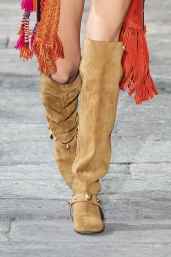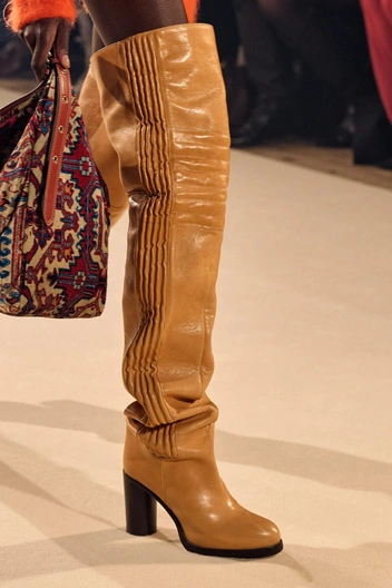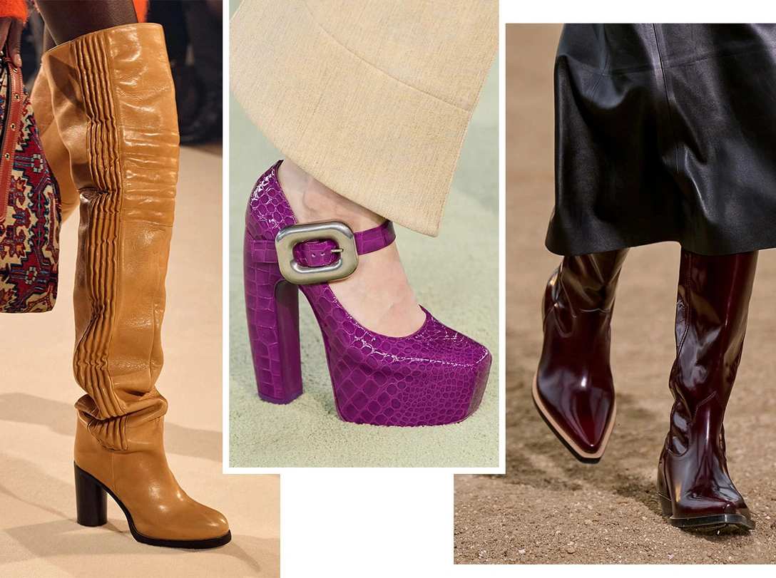 Осенне-зимний гардероб практически невозможно представить без такой обуви, как сапоги и ботфорты. В новом сезоне креативные директора модных марок сосредоточились на форме и материалах. Через полгода в тренде будут ботфорты с широким голенищем и на каблуке. Искать такие стоит в коллекциях Isabel Marant, Acne Studios и Roberto Cavalli. А у Emporio Armani, Coperni и Balmain ботфорты обтягивают ногу. Острый мыс, каблук или платформа, а также классическая палитра оттенков легко впишутся в любой гардероб.