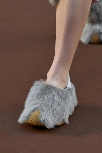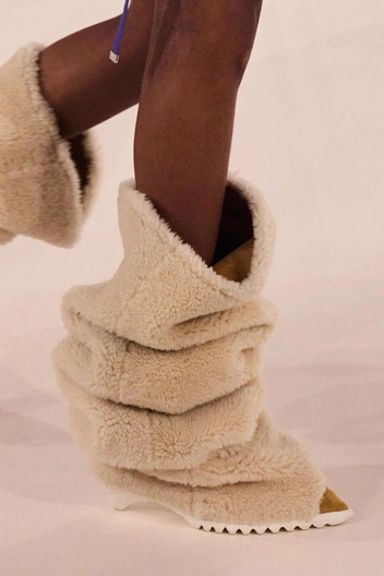 Меховая обувь и аксессуары — решение для смелых. Но сделав выбор в их пользу, можно быть уверенным в том, что ваш образ не останется незамеченным. Обувь с меховой отделкой, а также выполненную из овчины, на этот раз показали Loewe, Off-White, Rick Owens и Bottega Veneta. Дизайнеры модных Домов использовали мех натуральных и ярких цветов, которым украсили ботильоны на танкетке, кроссовки на плоском ходу и ботфорты.
