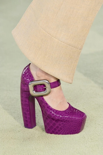 С верной подачи Versace и Valentino туфли на платформе и высоком каблуке стали абсолютным хитом этой весной. it-shoes так полюбились модницам, что в сезоне осень-зима 2022/23 подобную обувь в свои коллекции добавили и другие дизайнеры. Так, самая желанная пара теперь есть у Bottega Veneta, Lanvin, GCDS, Altuzarra и многих других. Креативные директора этих модных домов показали туфли насыщенных оттенков красного, оранжевого и фиолетового, а также усыпали обувь глиттером, поместили на нее монограмму и дополнили крупной пряжкой.