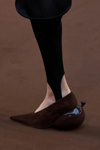 Если скошенный каблук не пришелся вам по душе, то артистичный в виде надувного шара или созданный из двух логотипов обязательно должны понравиться. В этом уверены Fendi и Loewe, которые и представили на подиуме обувь, туфли и сапоги, с такими необычными акцентными каблуками.