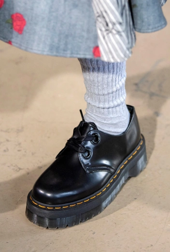Дизайнеры продолжают интерпретировать тренды 90-х. Эпоха от нас не так далека, поэтому и находить отголоски ушедшей моды в современных тенденциях намного проще (читайте также: Самые стильные звездные пары 90-х). После триумфа открытых босоножек на каблуке, какие носили в конце века, в тренды врываются ботинки на массивной подошве в гранжевой стилистике. А MSGM решили объединить главный тренд и сделать его более подходящим для прохладной осени, представив грубые ботинки в стиле Мэри Джейн.