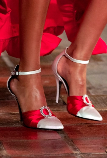 Главное альтер эго грубых ботинок в этом сезоне – изящные туфли в нарочито-наивной стилистике. Поскольку понятие женственности подвергается изменениям, и теперь довольно сложно с уверенностью отнести к женскому стилю определенную обувь, обе пары идеально сосуществуют в одном гардеробе и могут интересно смотреться в ансамблях с одними и теми же нарядами. Конечно, самая желанная пара сезона не обошлось и без главных элементов декора – страз, пайеток, изящных бантиков и тонких цепочек, обвивающих щиколотки.