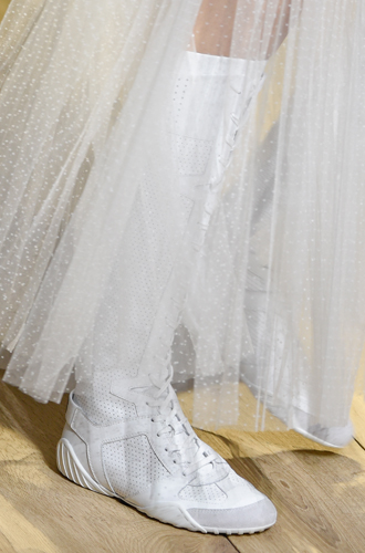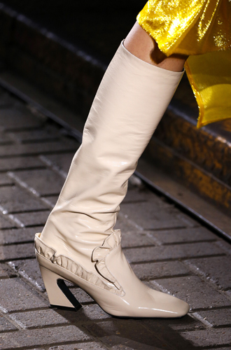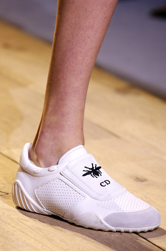 Белые сапоги, напоминающие модные когда-то высокие кеды, буквально взорвали показ Dior, а ботинки с облегающим голенищем, напоминающим носки, открыли новую страницу в истории бренда DKNY.