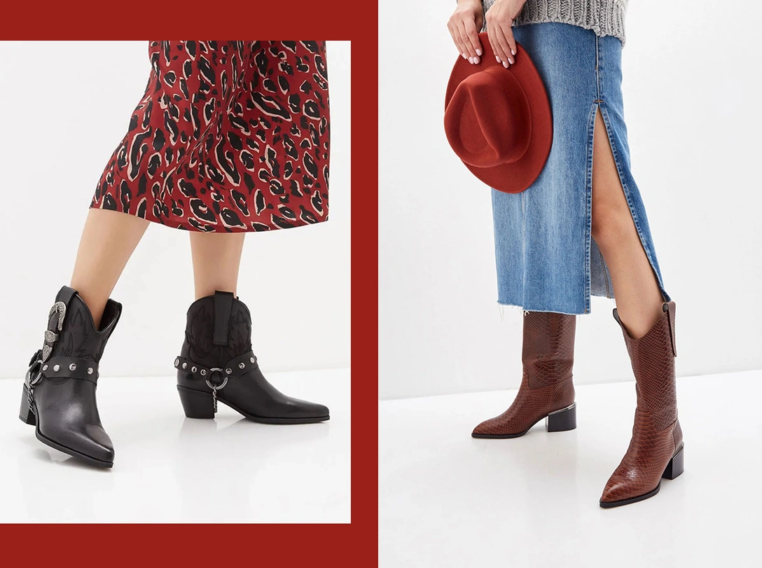 Ковбойские ботинки в тренде уже давно, и за это время успели перейти из разряда тенденции в классику. Эта пара обуви успела отметиться в гардеробах модных девушек всех эпох — от Кейт Мосс до Кендалл Дженнер. Почему все так обожают казаки? Они удобные — это раз. Они модные — это два. И самое главное — лаконичная и стильная пара казаков легко подстроится под совершенно разные наряды. Носите их буквально и днем и ночью. В начале дня — с классическими брюками, оверсайз-пиджаком и объемным пальто. А вечером дополняйте ими легкое или смелое и провокационное мини-платье в стиле baby doll — и отправляйтесь на вечеринку до утра. А самые модные варианты на любой вкус мы собрали в нашей подборке — выбирайте те, которые западут вам в душу сразу.