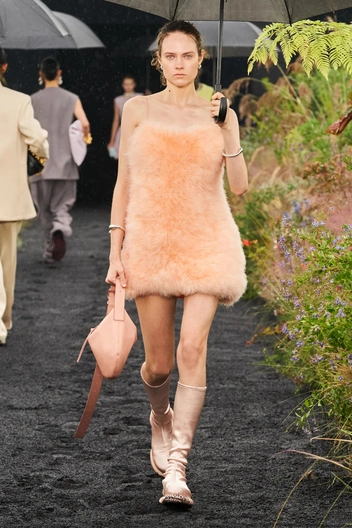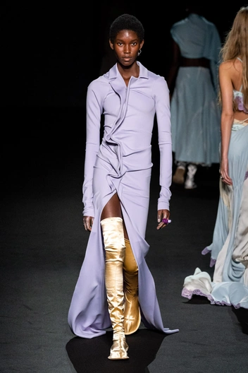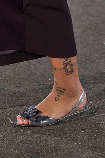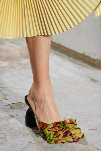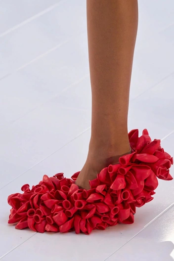 Обувь как произведение искусства — то, на что делают ставку многие бренды. Самые запоминающиеся, пожалуй, были у Loewe: Джонатан Андерсон показал свою версию туфелек мультяшной Минни Маус, а также продолжил тематику предыдущей коллекции, когда обувь украшал каблук нестандартной формы, вроде лака для ногтей или бутона розы. На этот раз туфли были созданы из сдувшихся шариков. Эффектная обувь идеально вписалась в аутфиты с платьями асимметричного кроя (читайте также: Полный гид по самым модным платьям осени и зимы 2022/23).
