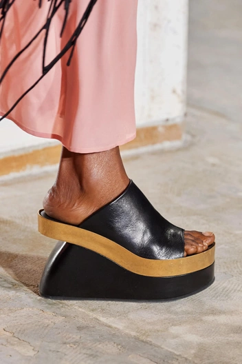 Обувь на платформе на сдает оборотов и останется актуальной и в весенне-летнем сезоне 2023. Платформа дополнила яркие кроссовки, как на показе Fendi, ботильоны и сабо, как у Dries Van Noten. Многие креативные директора поиграли с формой платформы, сделав ее необычной формы, тем самым получив более интересные и фактурные пары.