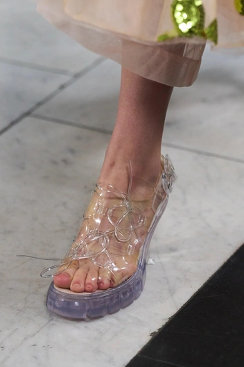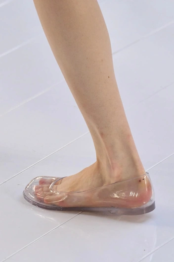 Пластиковая обувь готова вернуться в наш повседневный гардероб. Инфантильные сандалии и балетки из полупрозрачного материала гармонично вписываются в образы с романтичными платьями и короткими юбками. За идеальной парой отправляйтесь к Tod's и Simone Rocha.